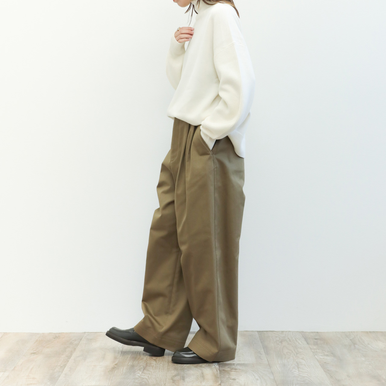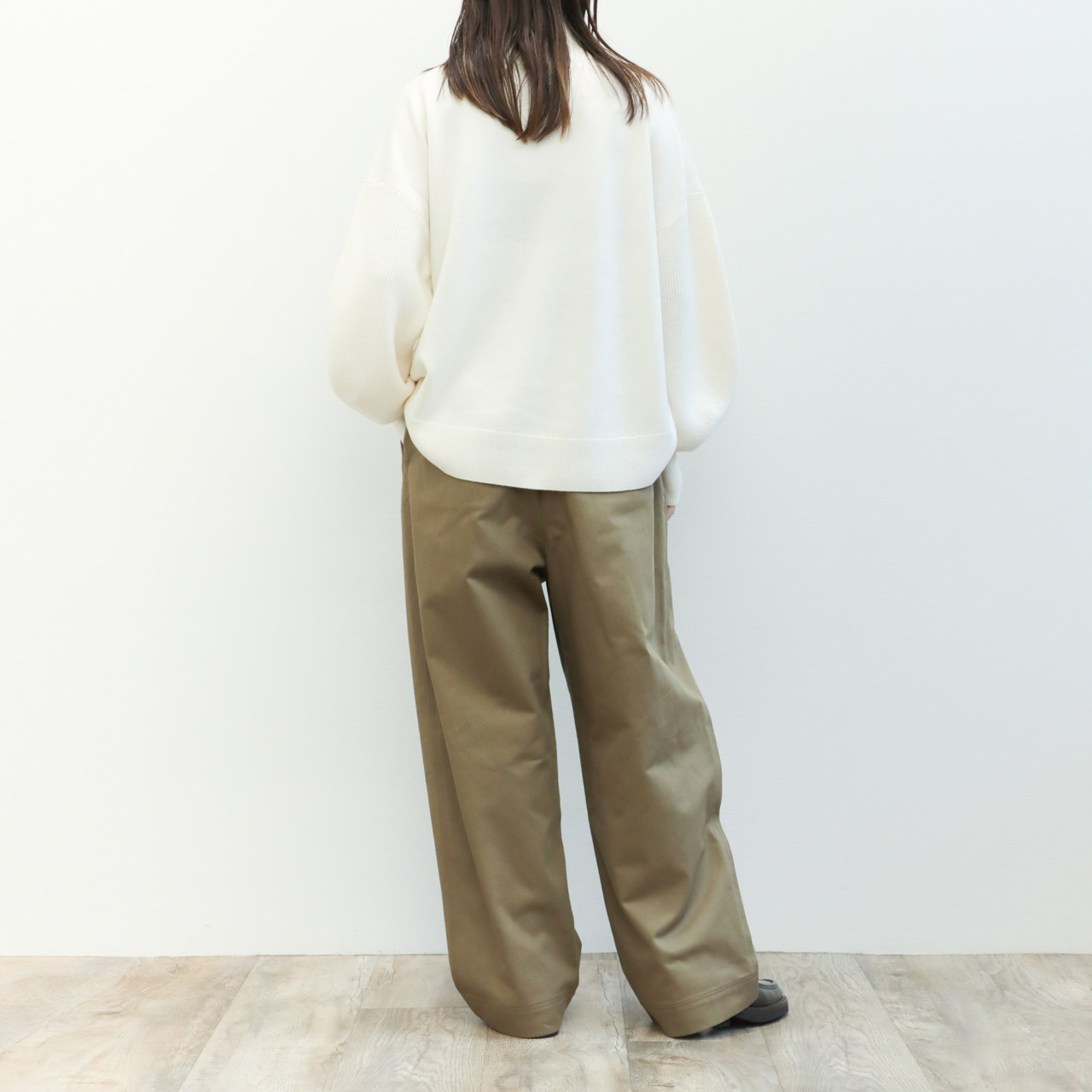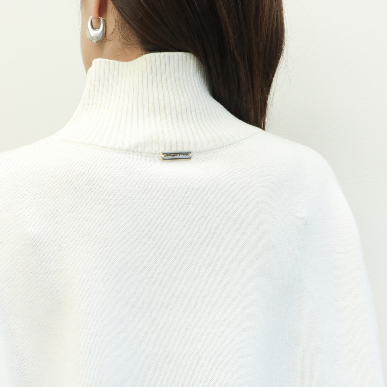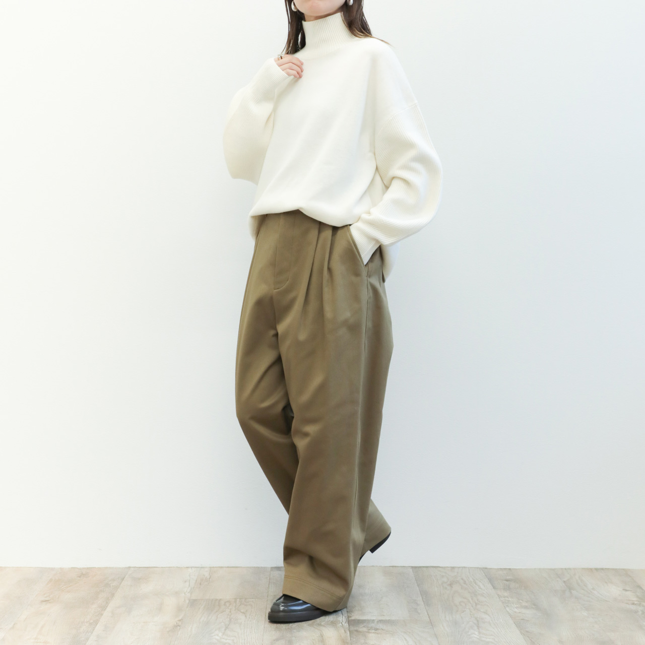 ベースはMICA&DEALの得意とする前後差をつけたボディラインを気にせず着られる程よくゆとりのあるシルエット。モックネック(ハイネック)を採用し、暖かさをキープ。更にユニークなのがスリーブのデザイン。