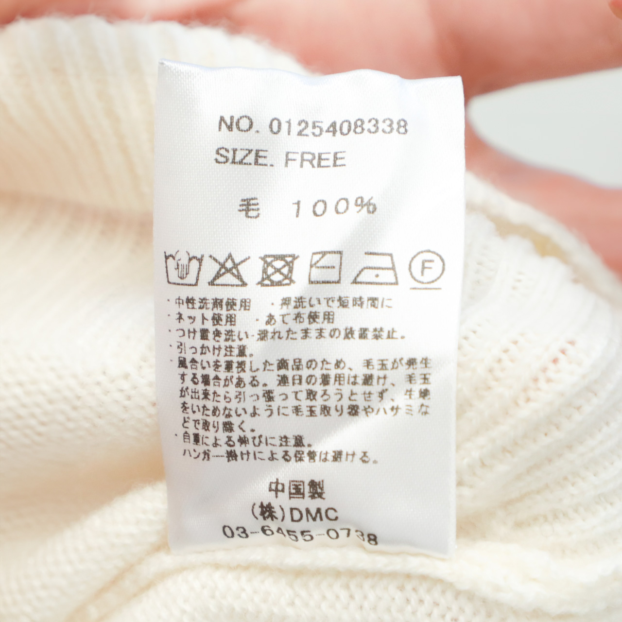 素材はウール100%。秋冬らしい程よい起毛感は持たせつつも滑らかで柔らかなウールは暖かく着る方を包み込むと同時に、スリーブのデザインを引き立たせます。