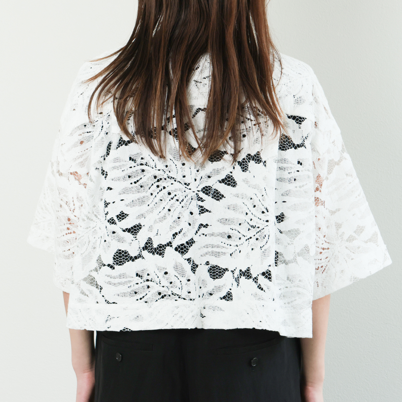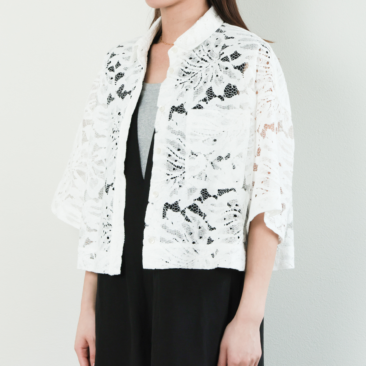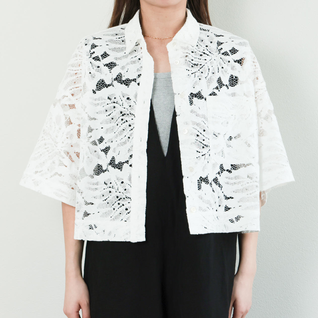 | モデル | LEAF RASCHEL LACE CROPPED SHIRT |