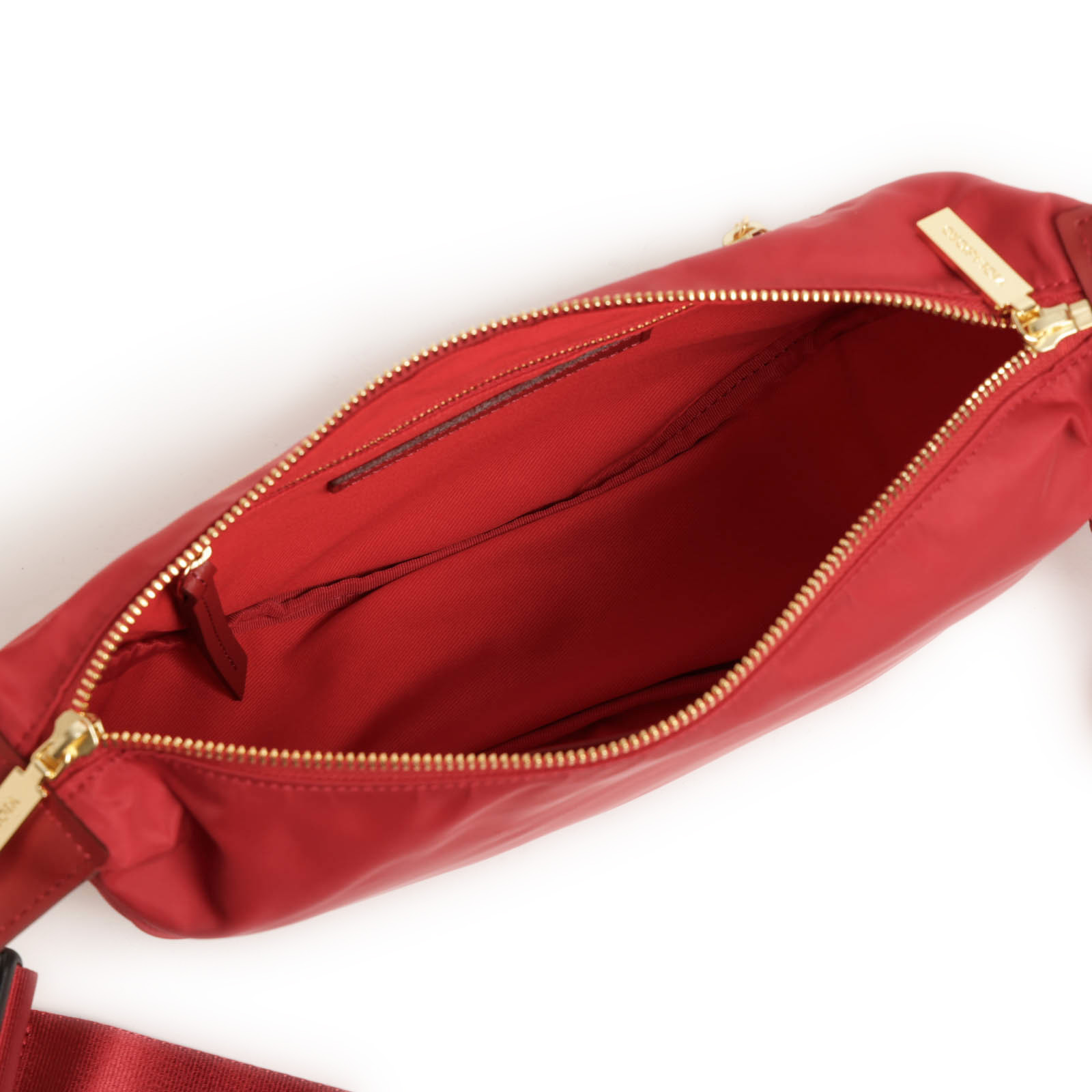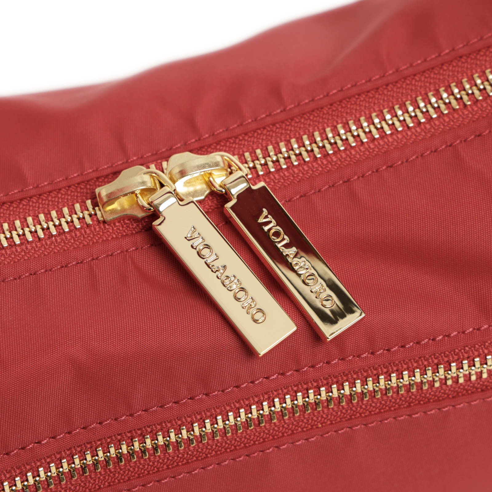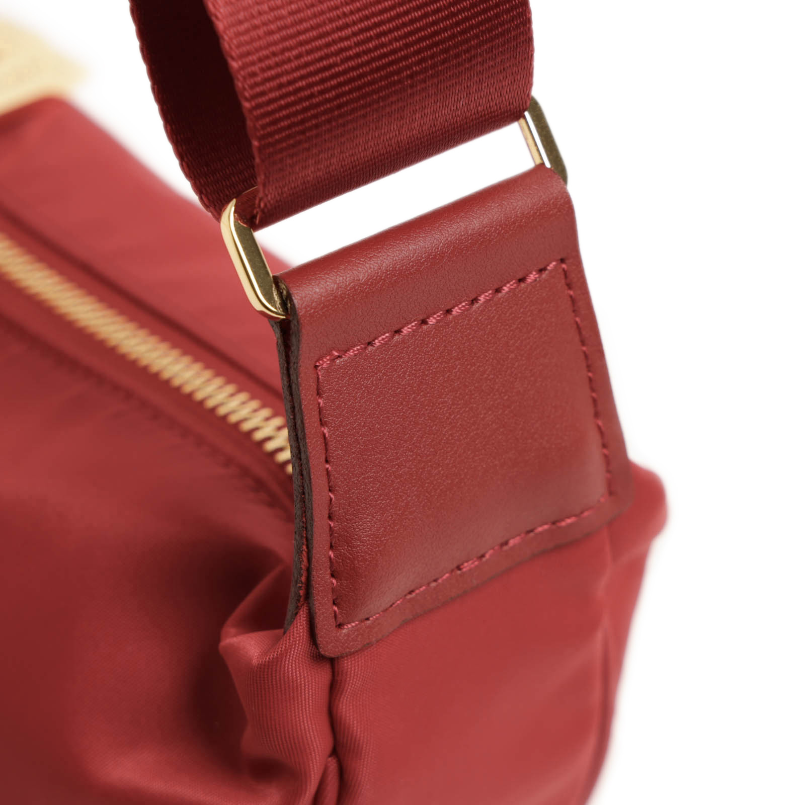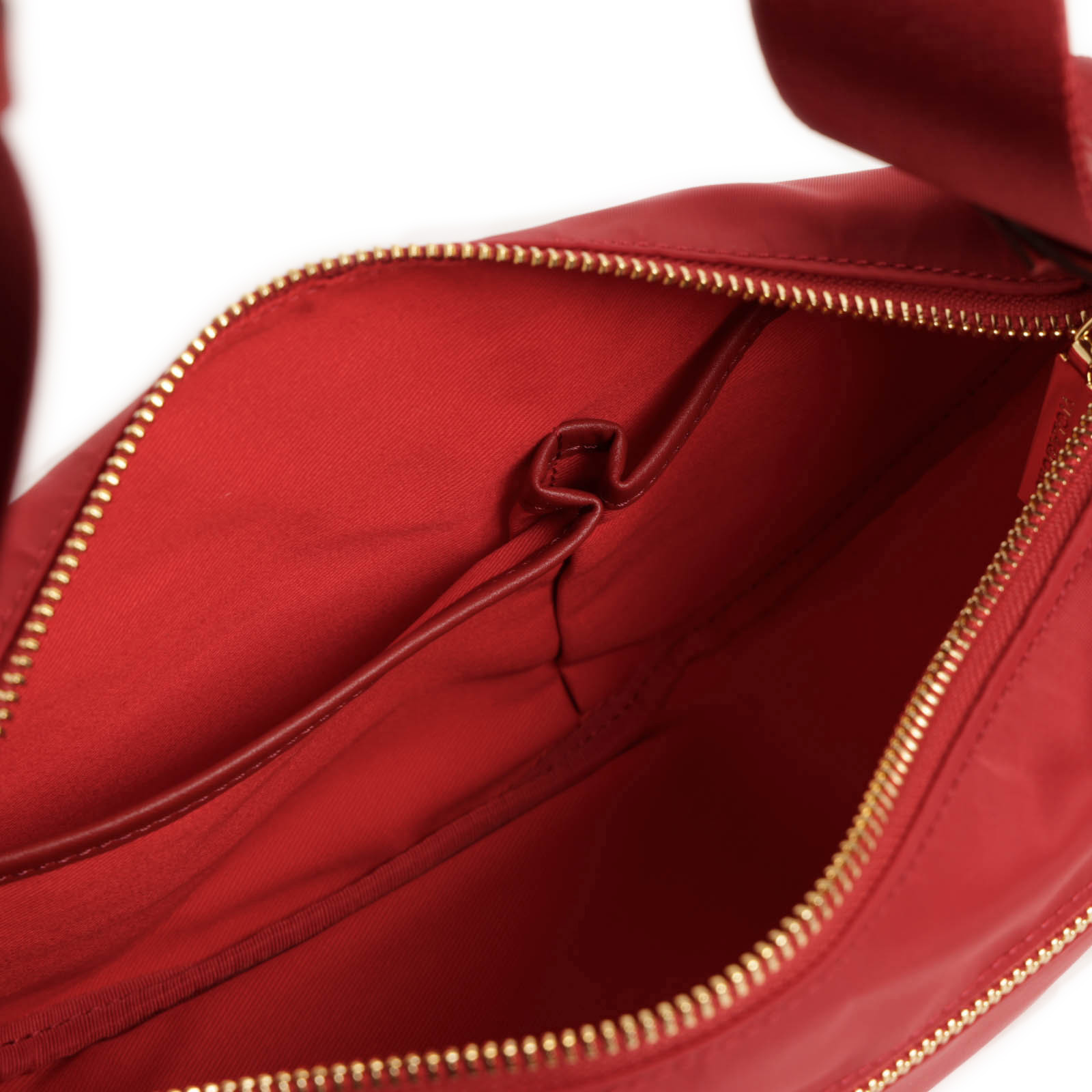 素材はナイロン×イタリアンレザー。ボディのメイン素材となるナイロンは素材特有の艶があるものののスポーティに見えるほどのシャカシャカさはなく、むしろ大人の女性にピッタリな落ち着いた光沢感。