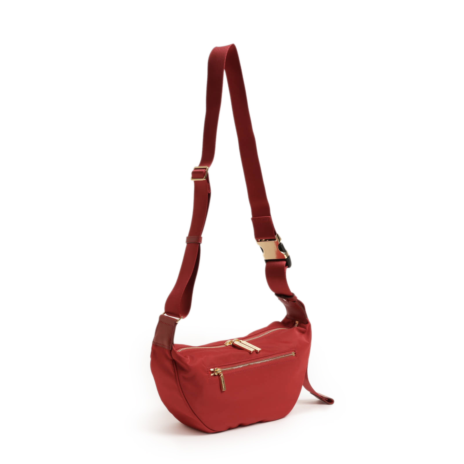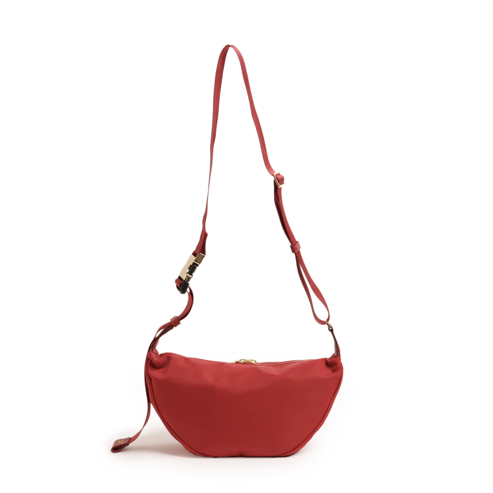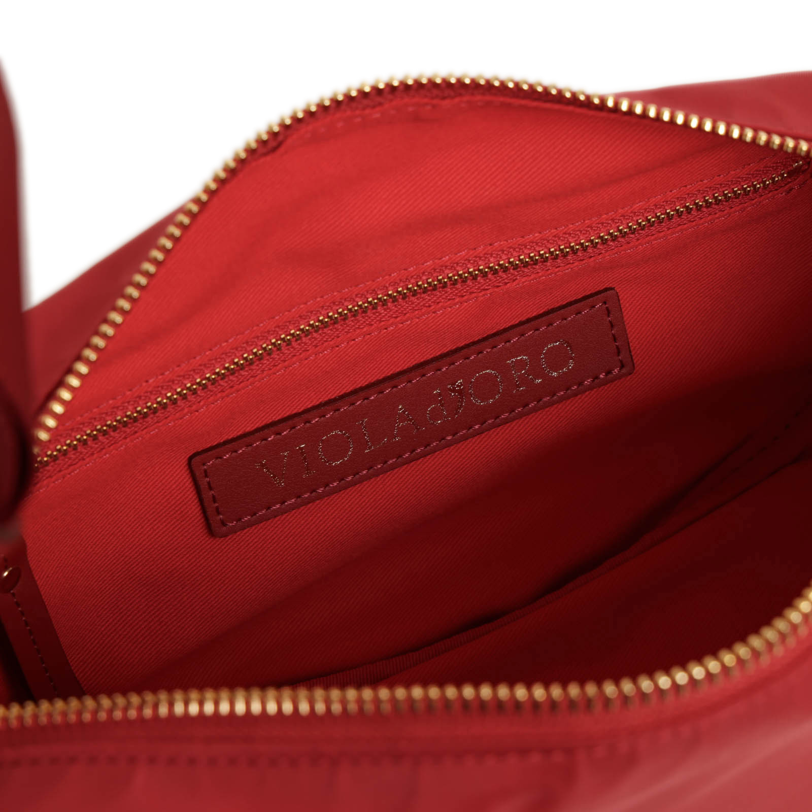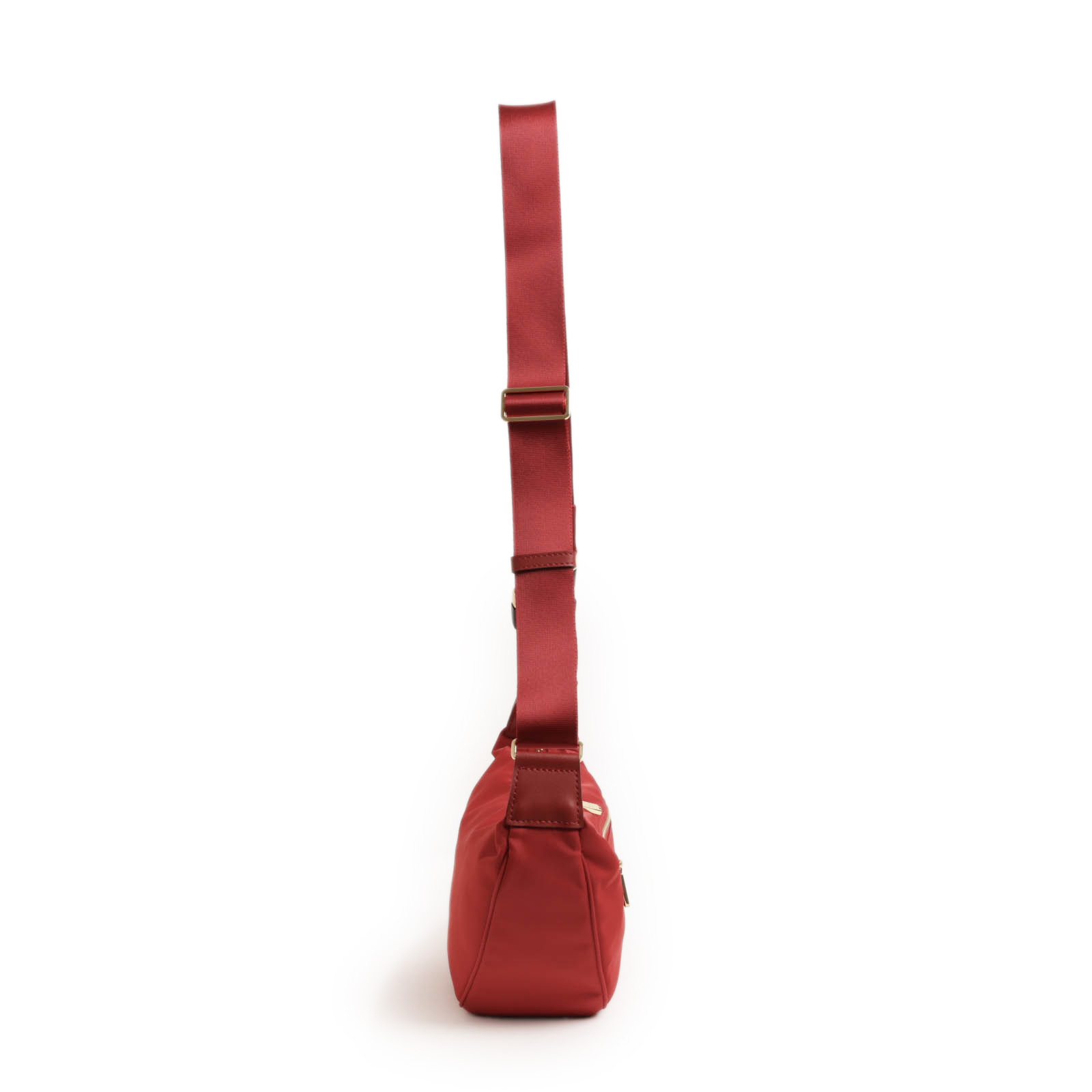 素材はナイロン×イタリアンレザー。ボディのメイン素材となるナイロンは素材特有の艶があるものののスポーティに見えるほどのシャカシャカさはなく、むしろ大人の女性にピッタリな落ち着いた光沢感。