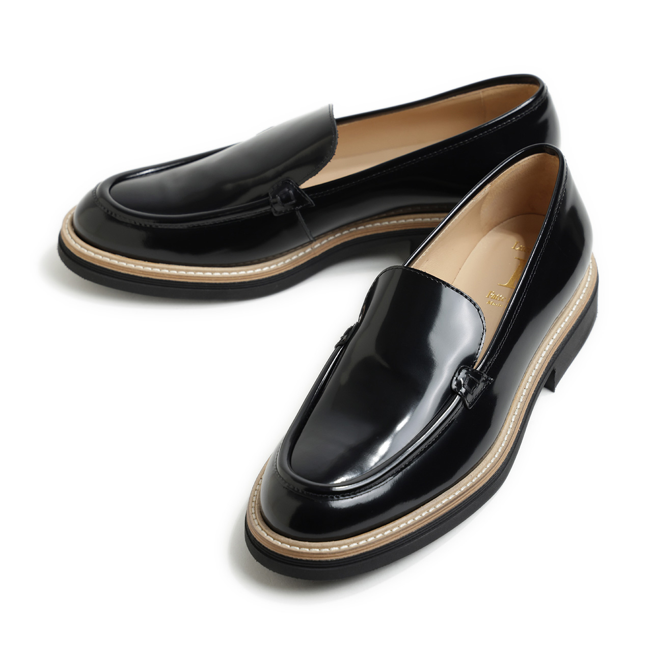 ガラスレザーの艶やかな表情が足元を上品に魅せてくれ、パンツからスカートまで幅広く大人の女性のスタイリングを支えてくれます。
