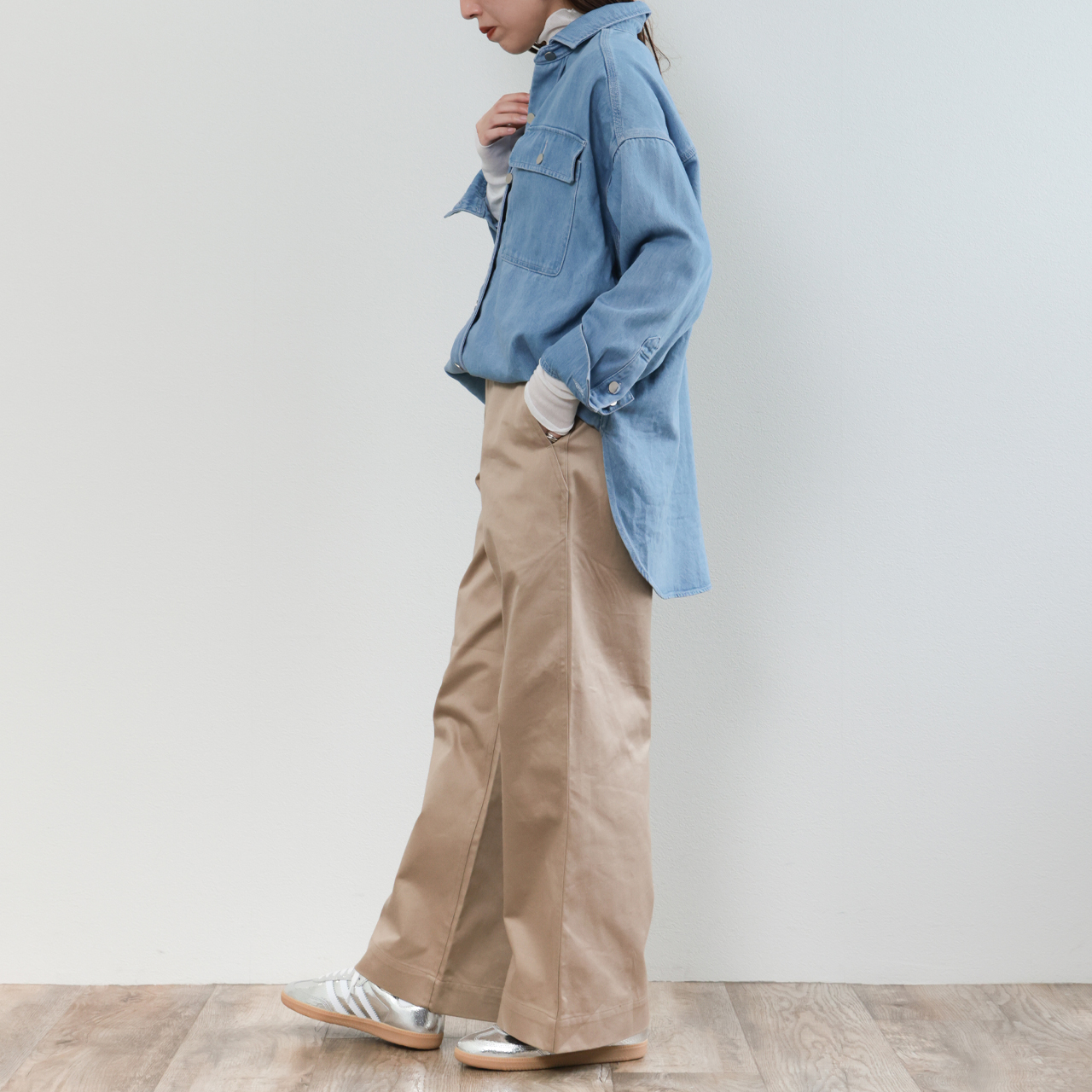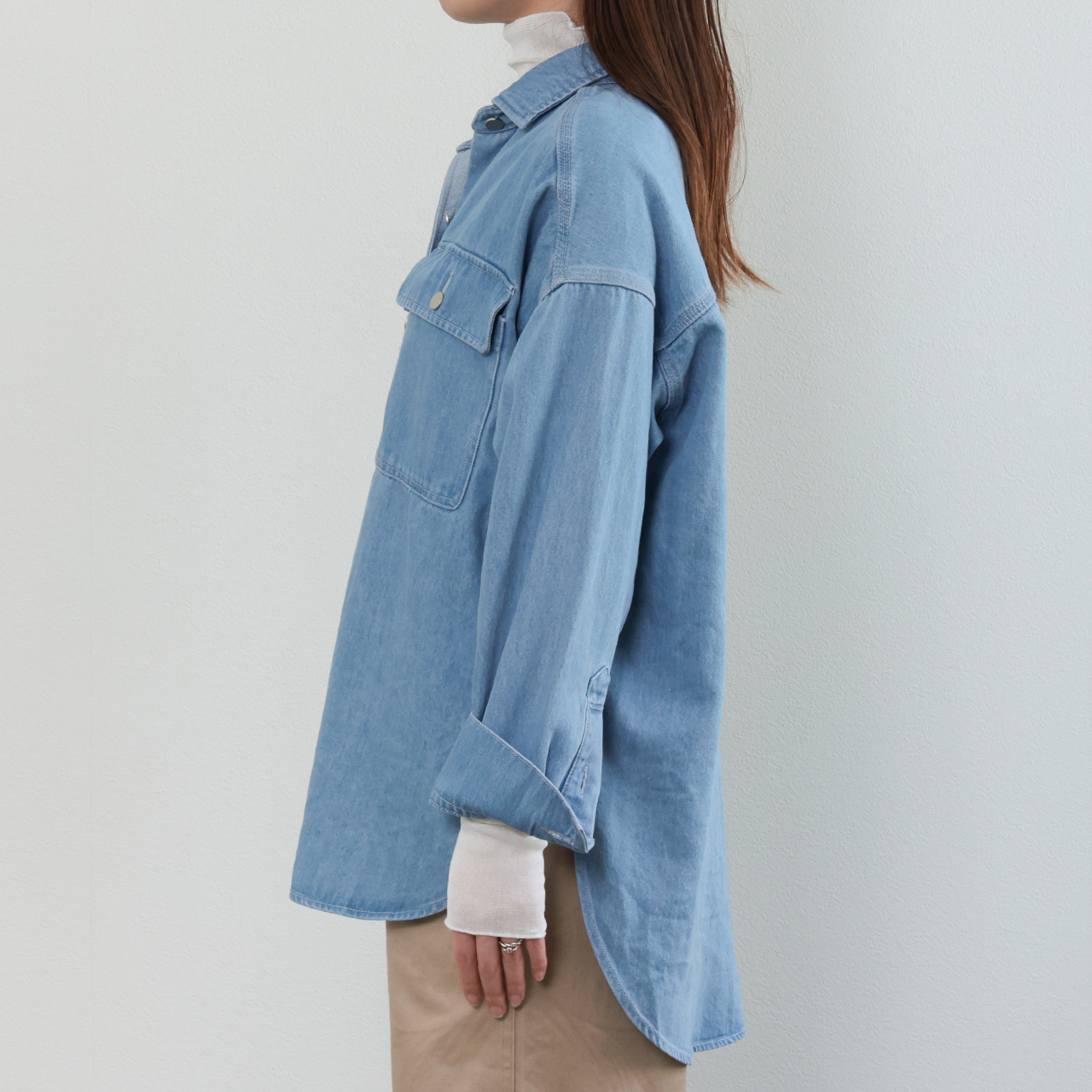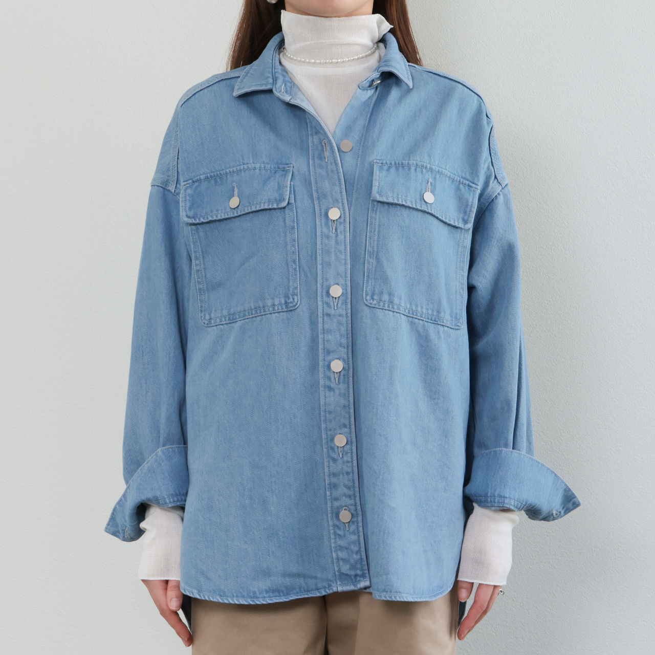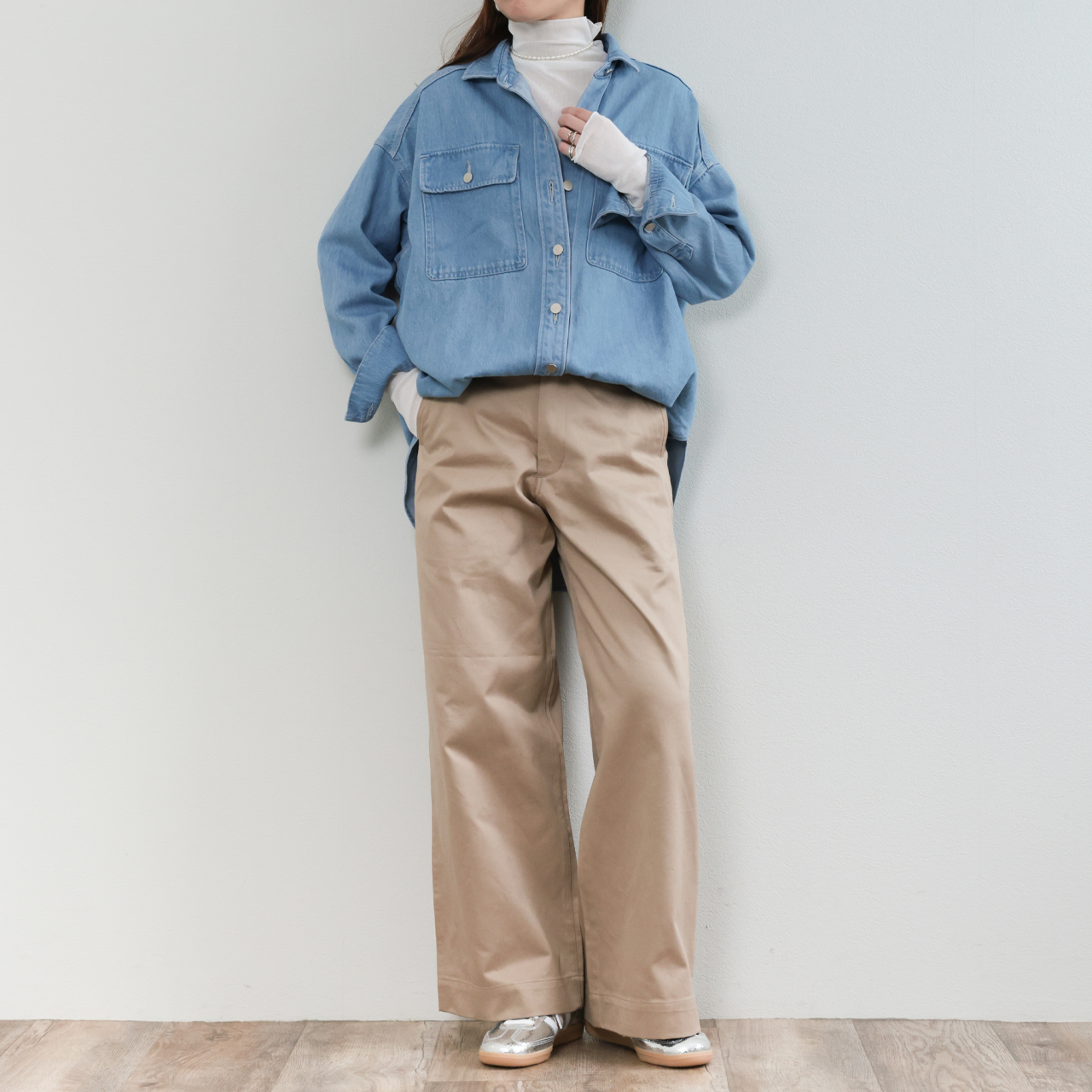 デニムシャツはシーズンやトレンドを問わず使える優れモノ。様々なスタイルでこの一着をお楽しみください。