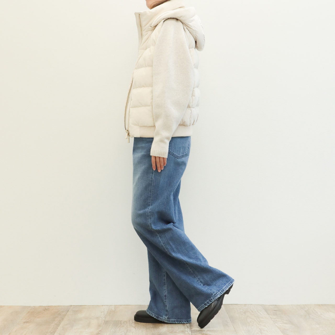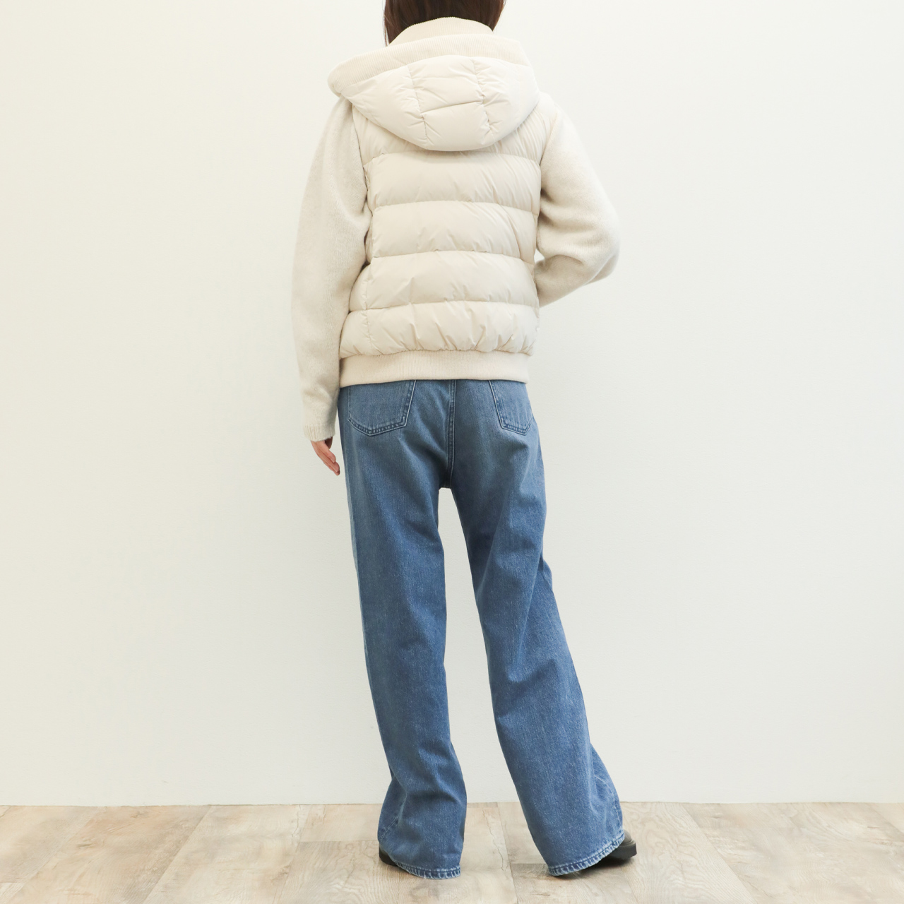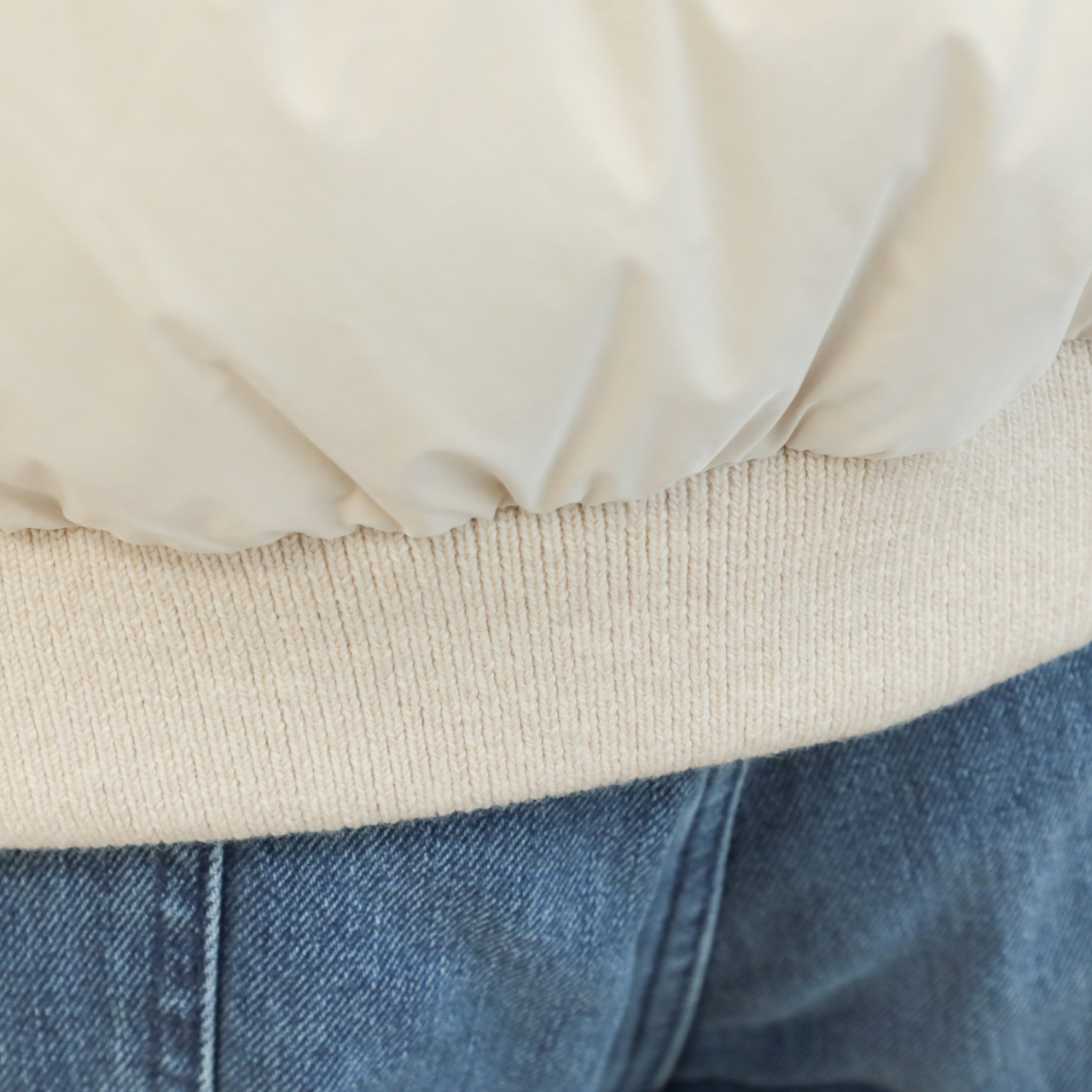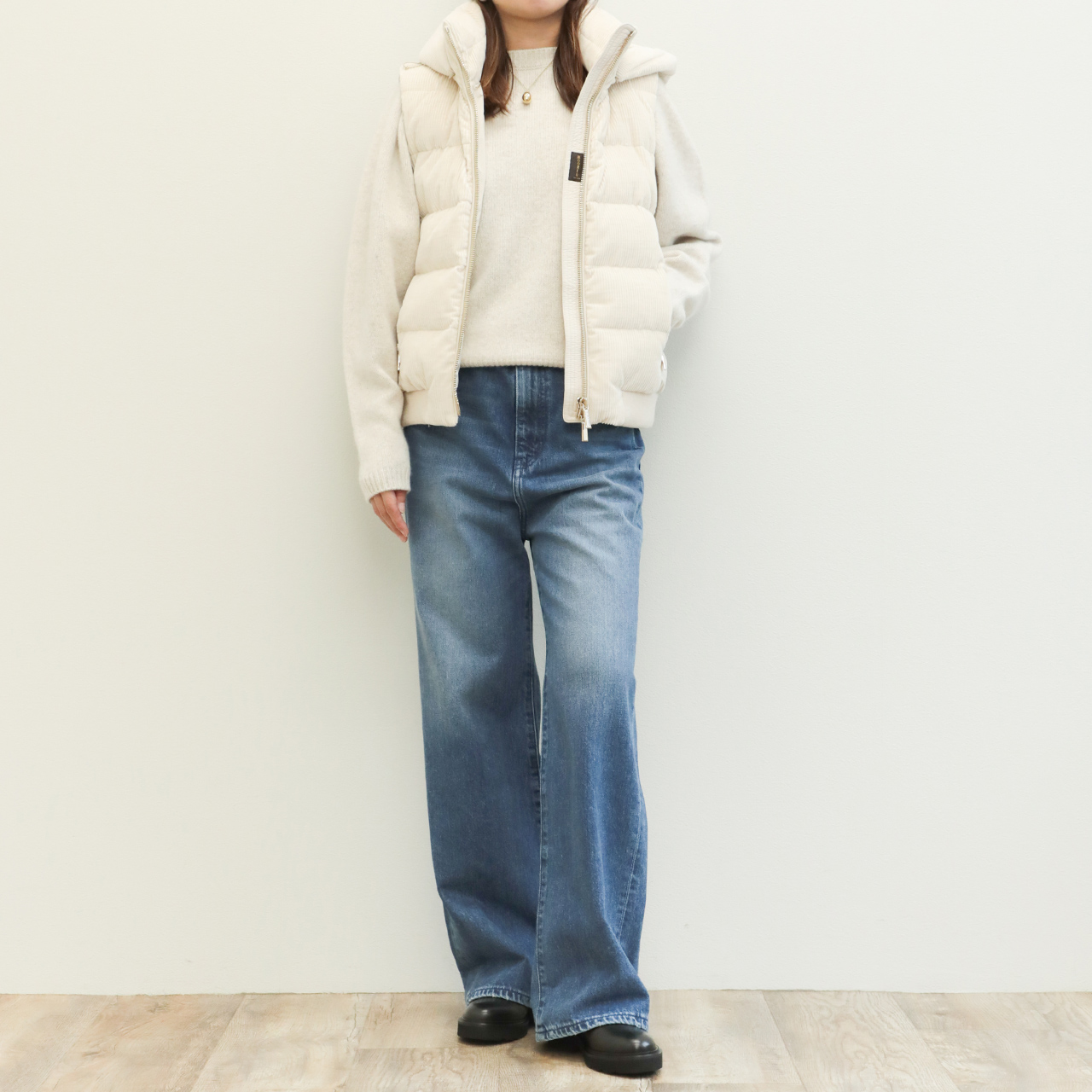 比較的コンパクトなパターンですので、ダウンなのにすっきりと見える点も特徴的。細身のパンツと合わせてすっきりと着てもいいですし、ワイドなパンツやスカートと合わせてAラインの着こなしにまとめるのもあり。