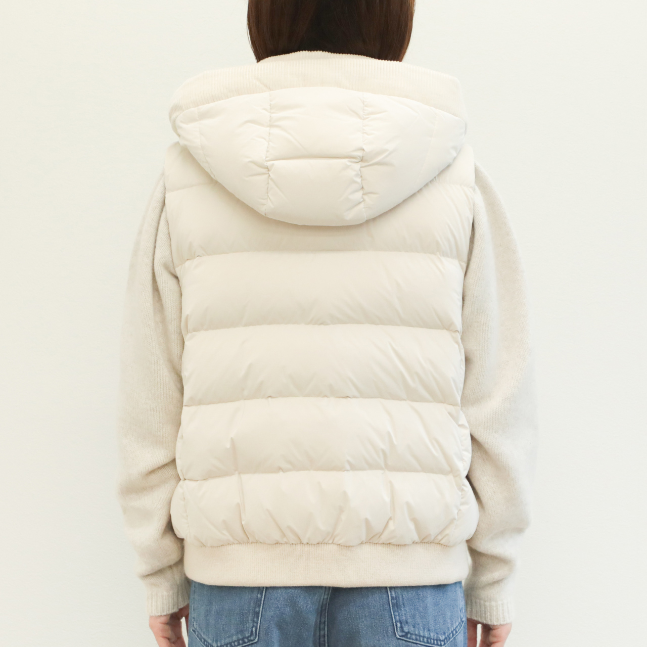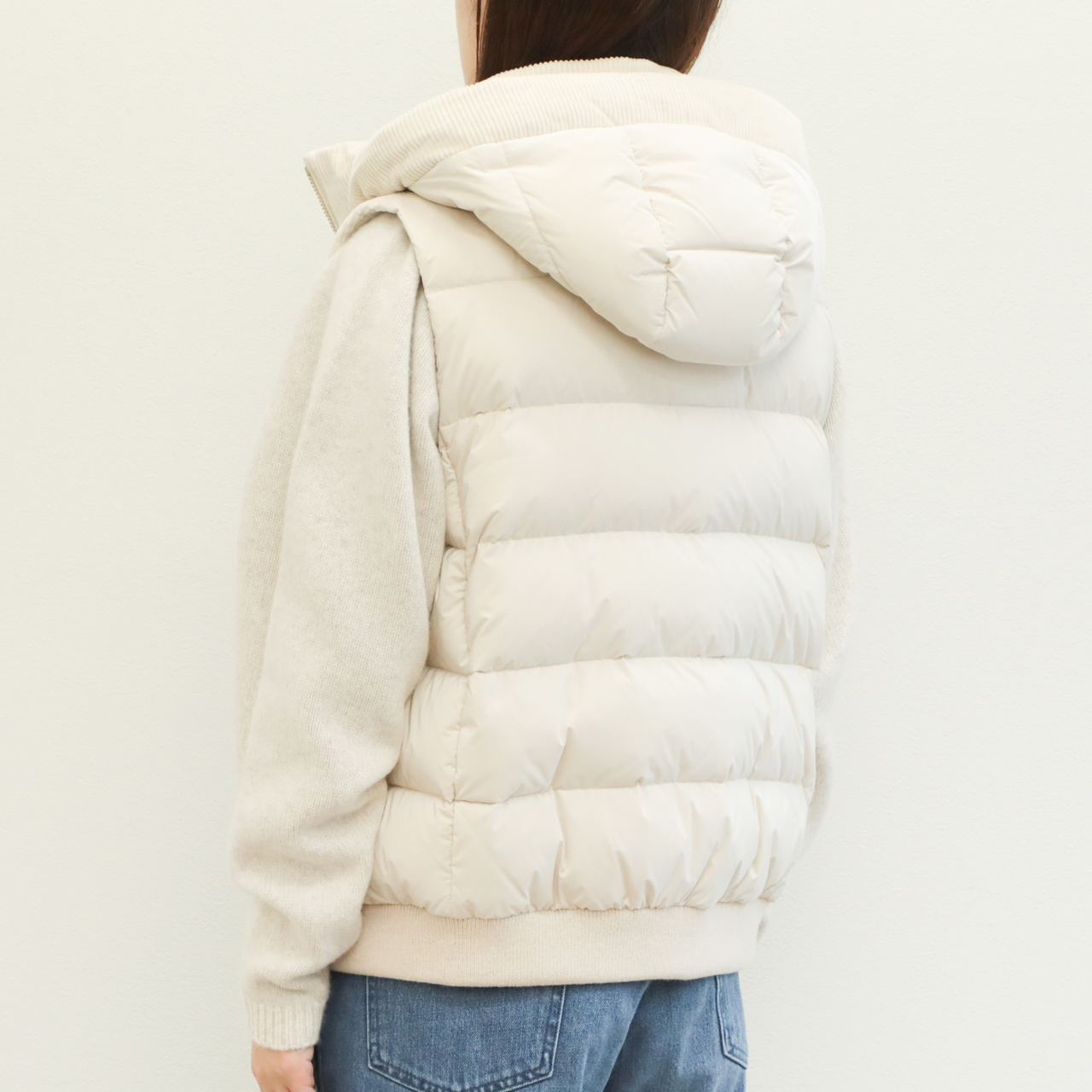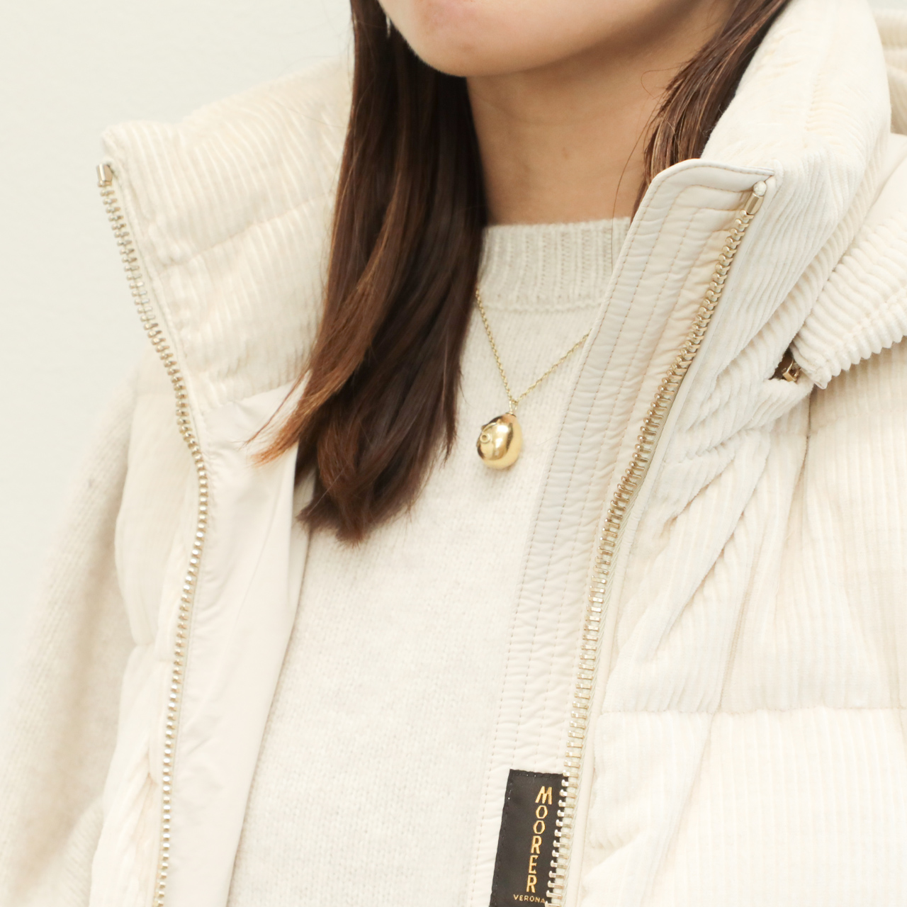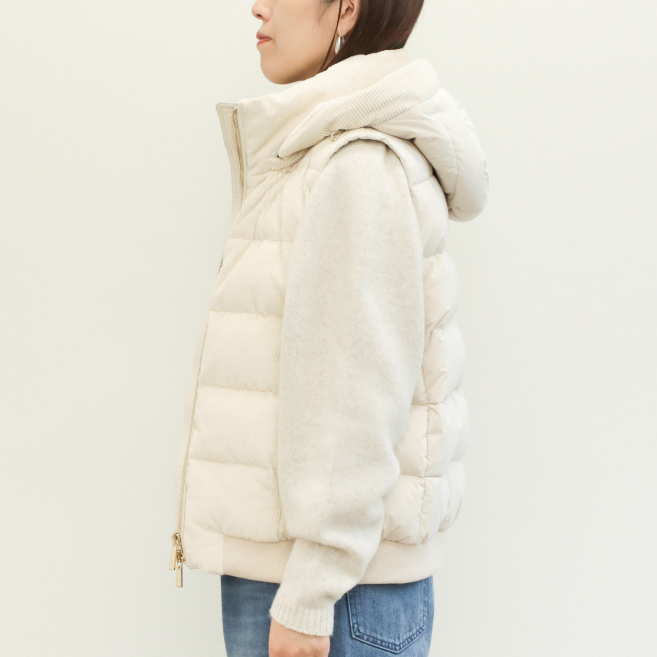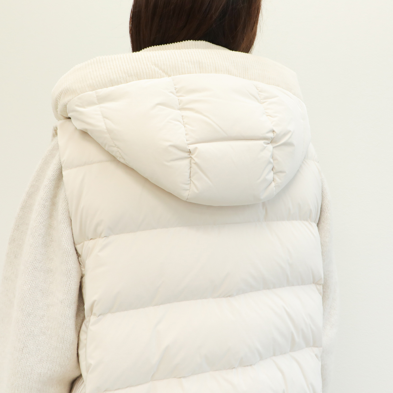 比較的コンパクトなパターンですので、ダウンなのにすっきりと見える点も特徴的。細身のパンツと合わせてすっきりと着てもいいですし、ワイドなパンツやスカートと合わせてAラインの着こなしにまとめるのもあり。