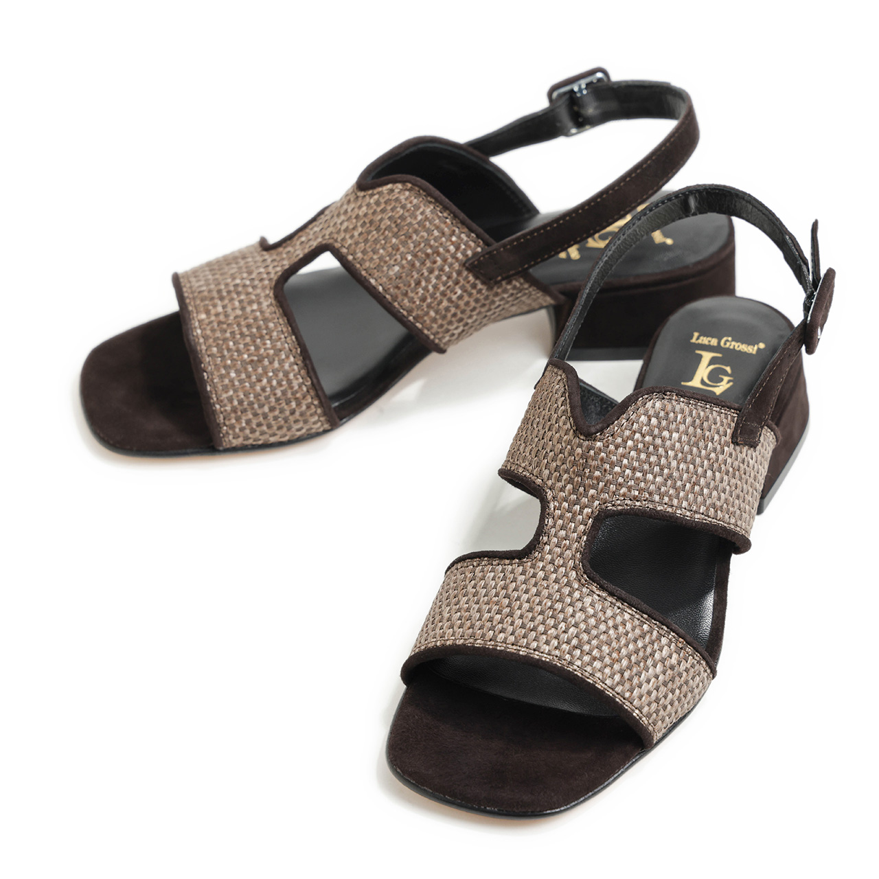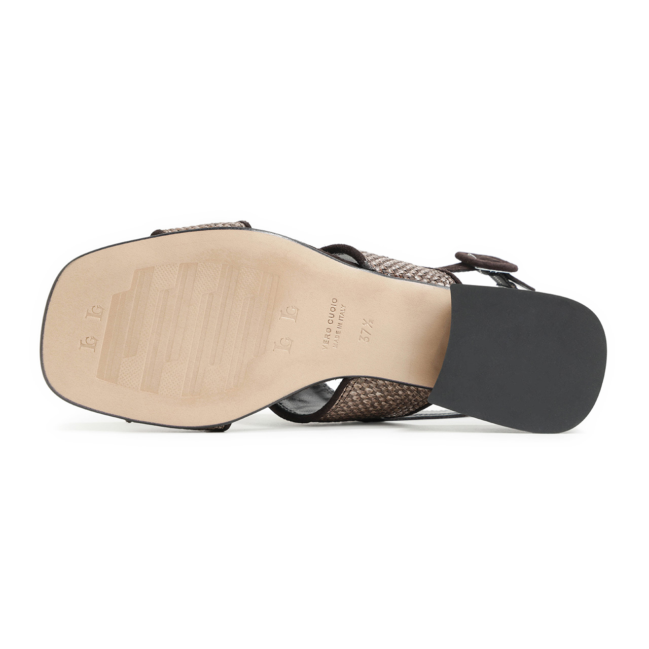 アッパーにはラフィア素材を編み込んだシートをストラップに使用。春夏シーズンらしい軽快な表情に仕上がっています。