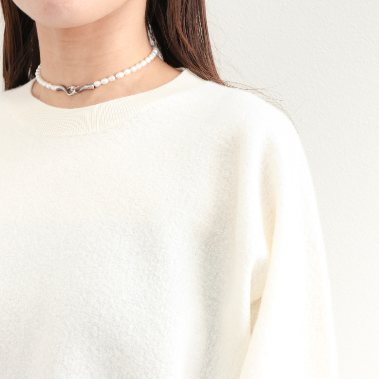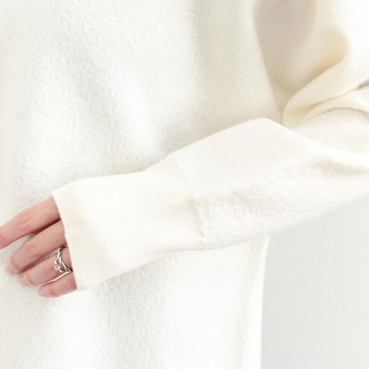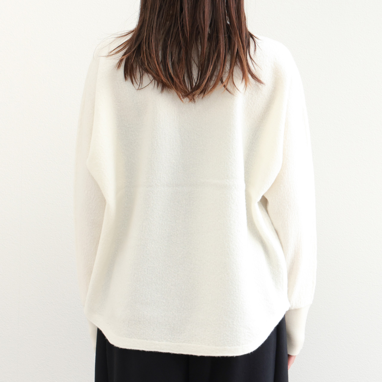 こちらはゆったりとしたドルマンスリーブで体型を選ばず着やすいシルエットのニットプルオーバーです。