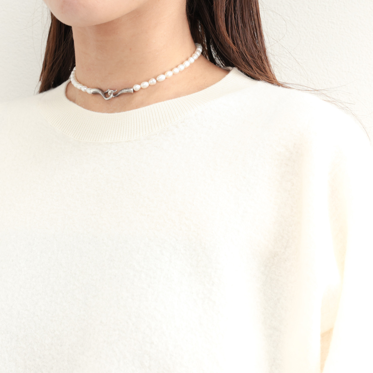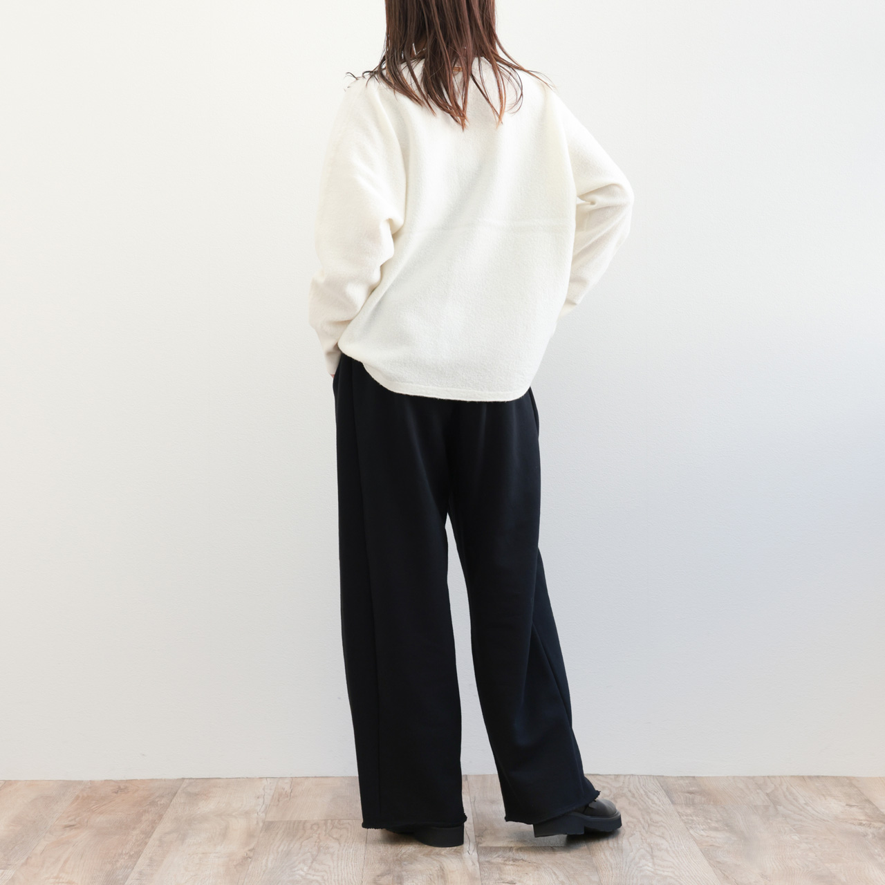 身頃や袖の天竺部分にのみボイル加工を施している為ニットにコントラストが生まれ、シンプルながら目を惹くアイテムになっています。