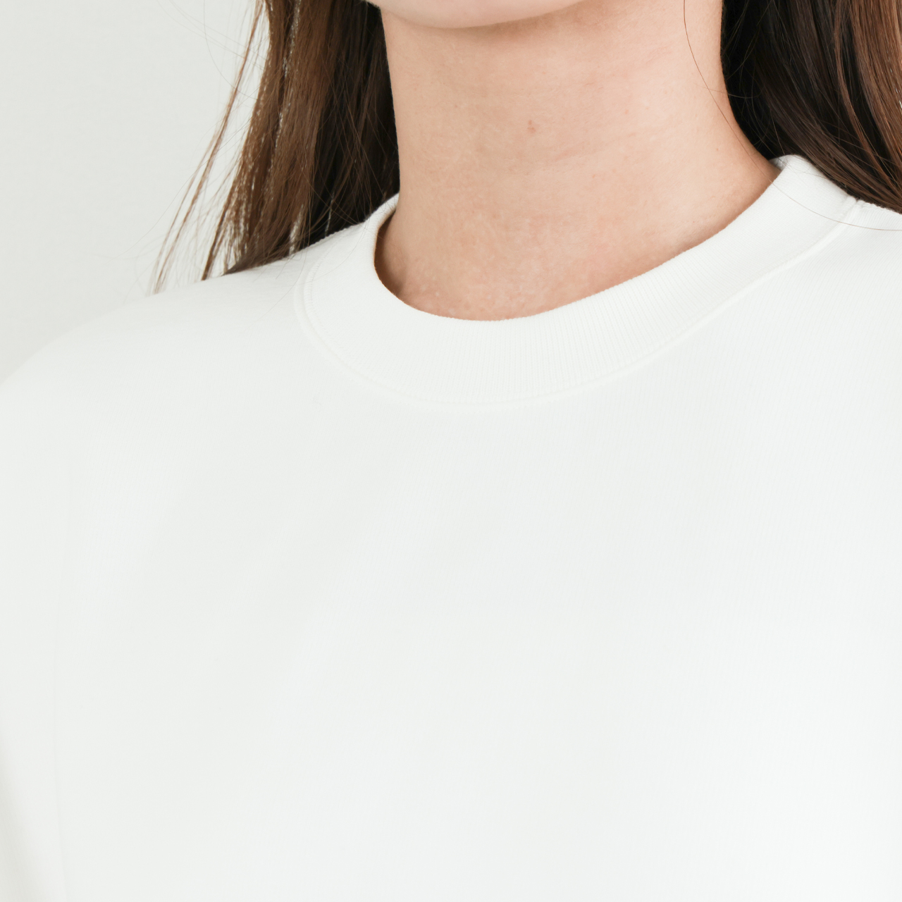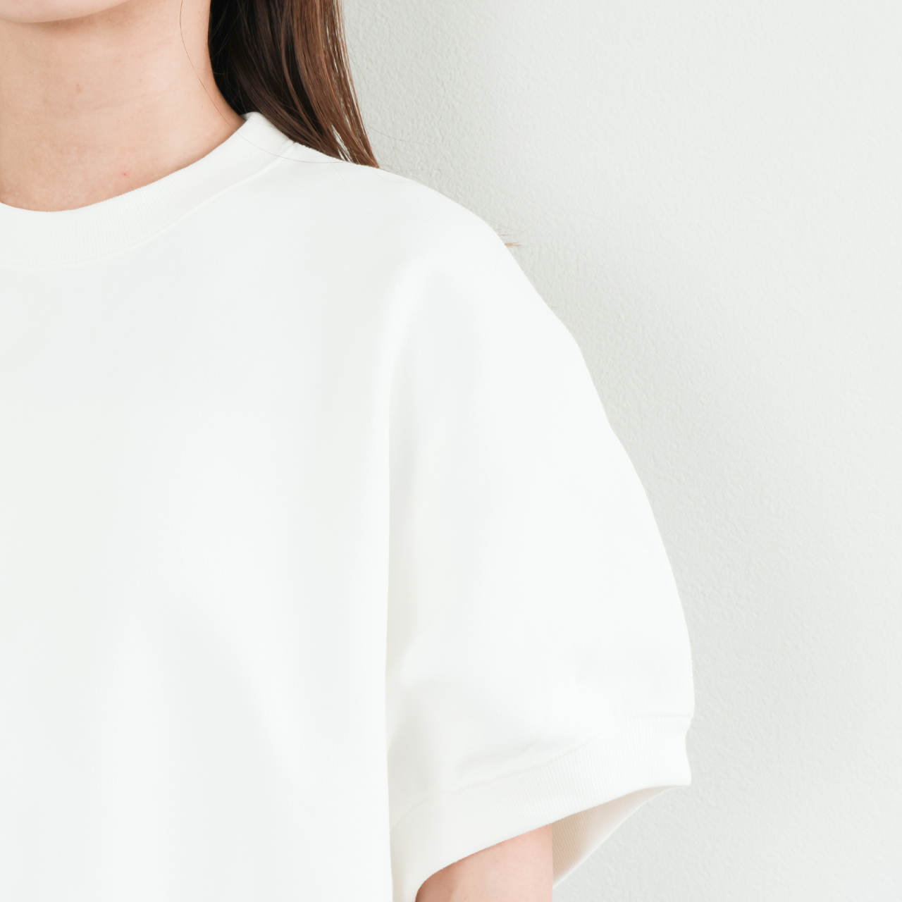 ダブル組織のふっくらとしたハリのある風合いが特徴的な素材を使用。