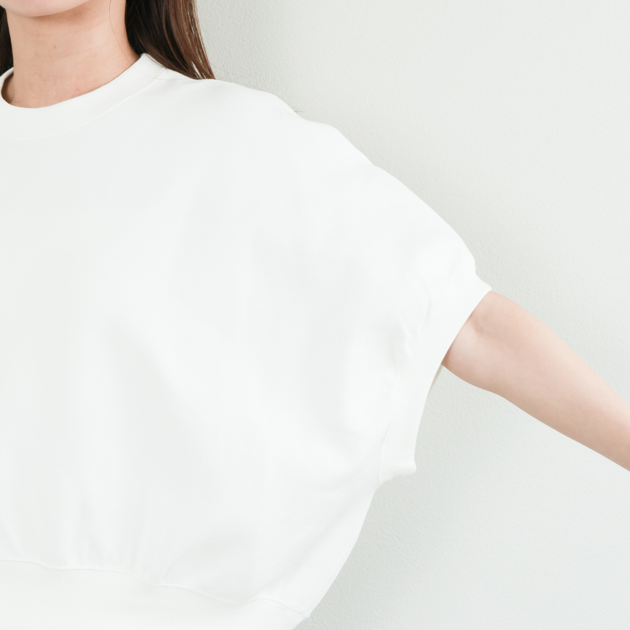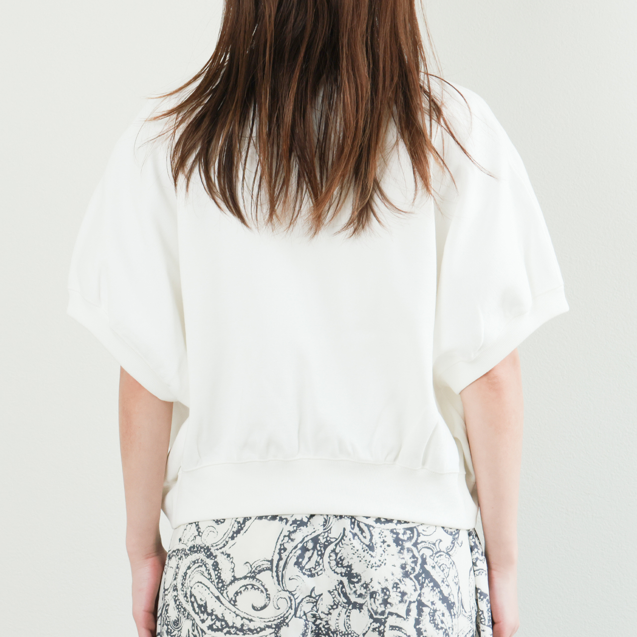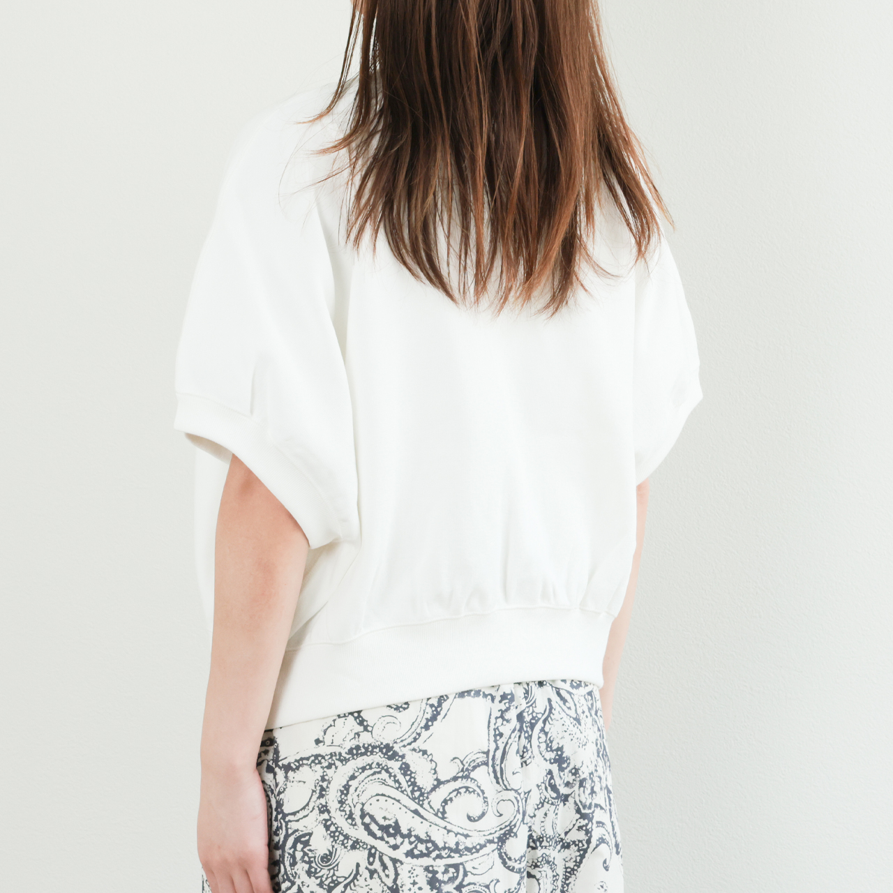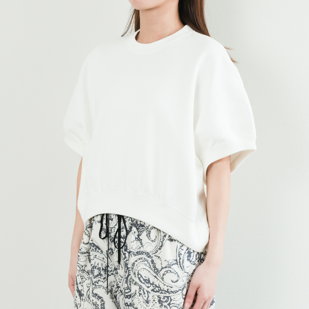 身頃続きのギャザースリーブから生まれる立体的なフォルムとクロップド丈が魅力。ラウンドさせたヘムデザインもポイントの、存在感のある新鮮な一着です。