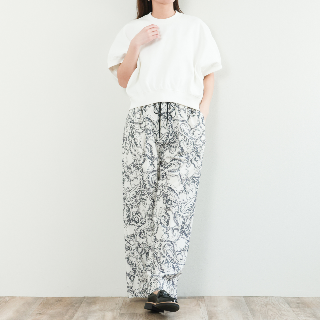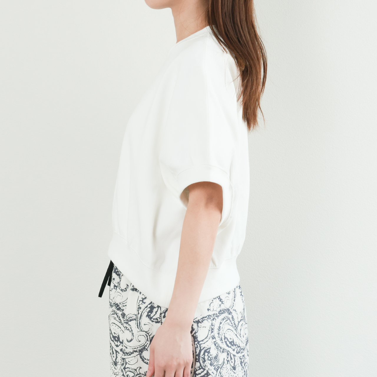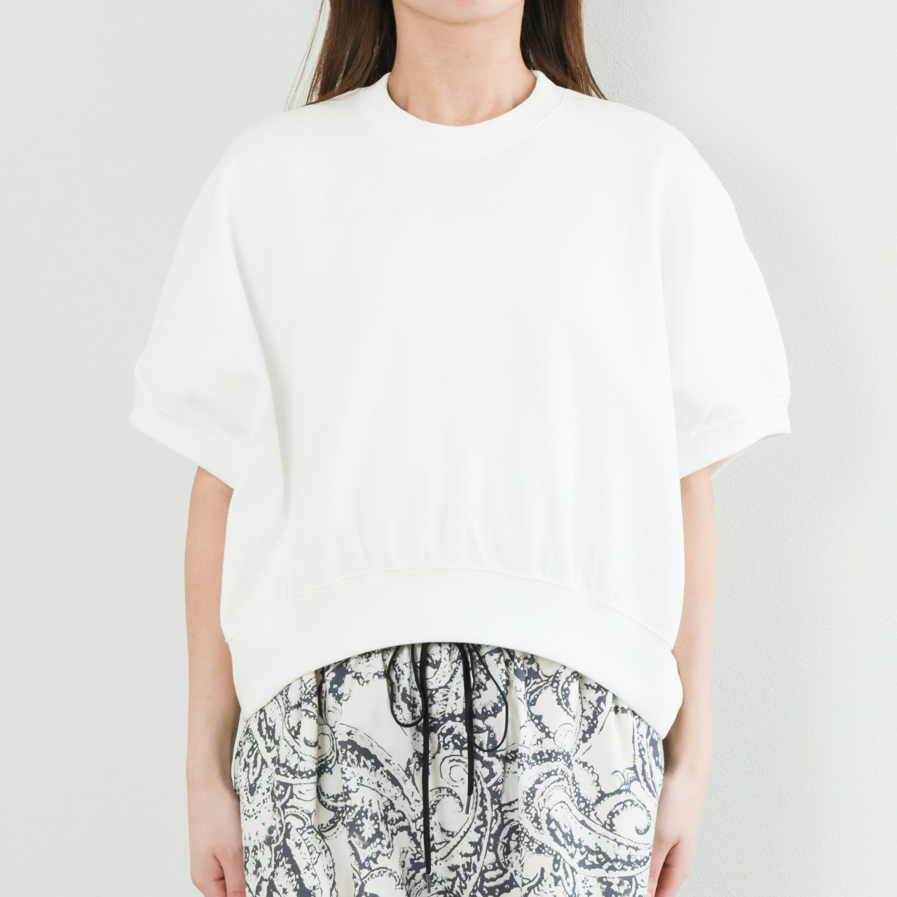 SACRA サクラ レディース カットソー プルオーバー クルーネック ギャザー ラウンドヘム コットン ダブル組織 DOUBLE KNITTED CLOTH TOP 126145091 WHITE/ホワイト