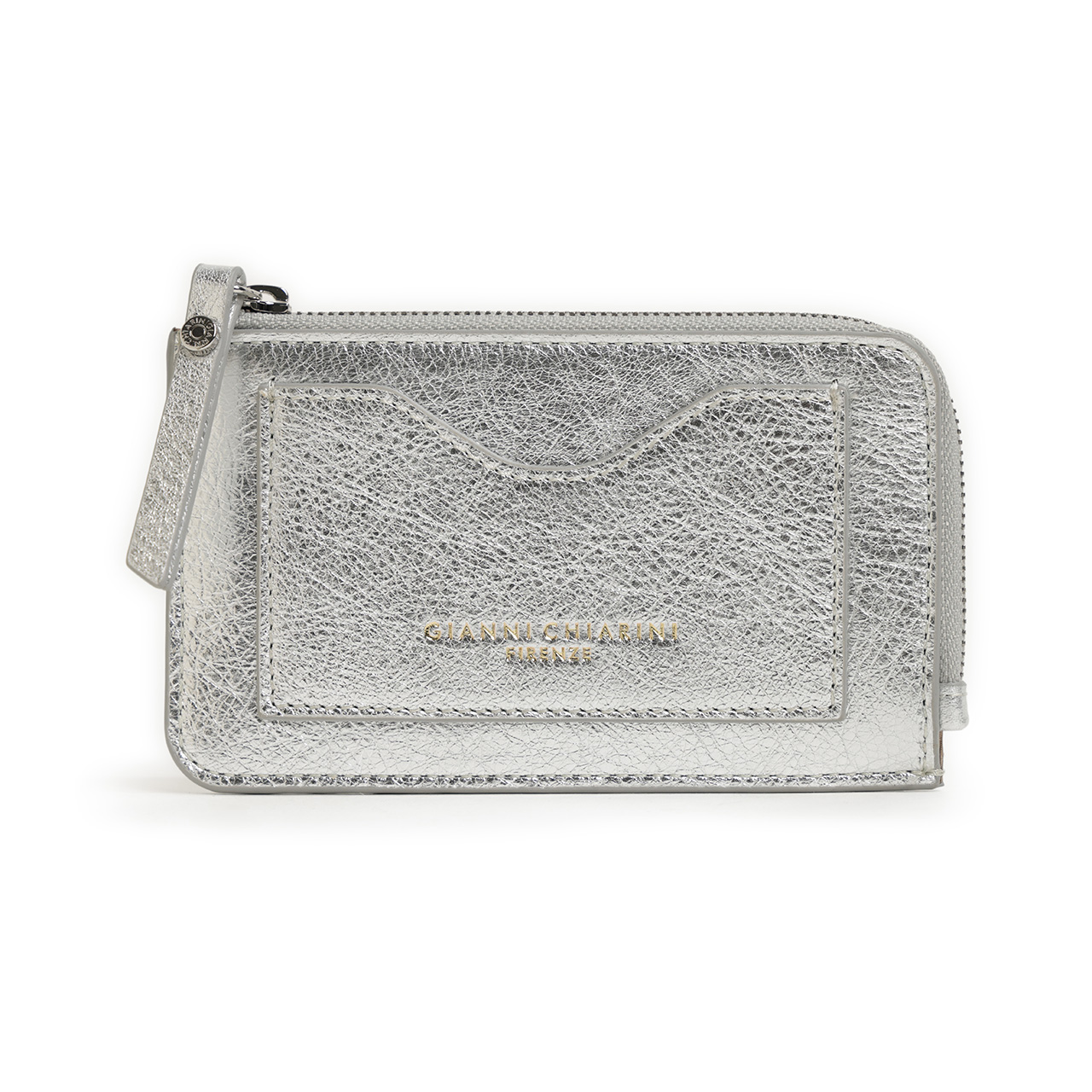 GIANNI CHIARINI ジャンニキアリーニ ESENTIAL エッセンシャル 財布 L字ジップ コンパクト ミニ レザー メタリック ジップカードホルダー PF W5085 ARGENTO/シルバー