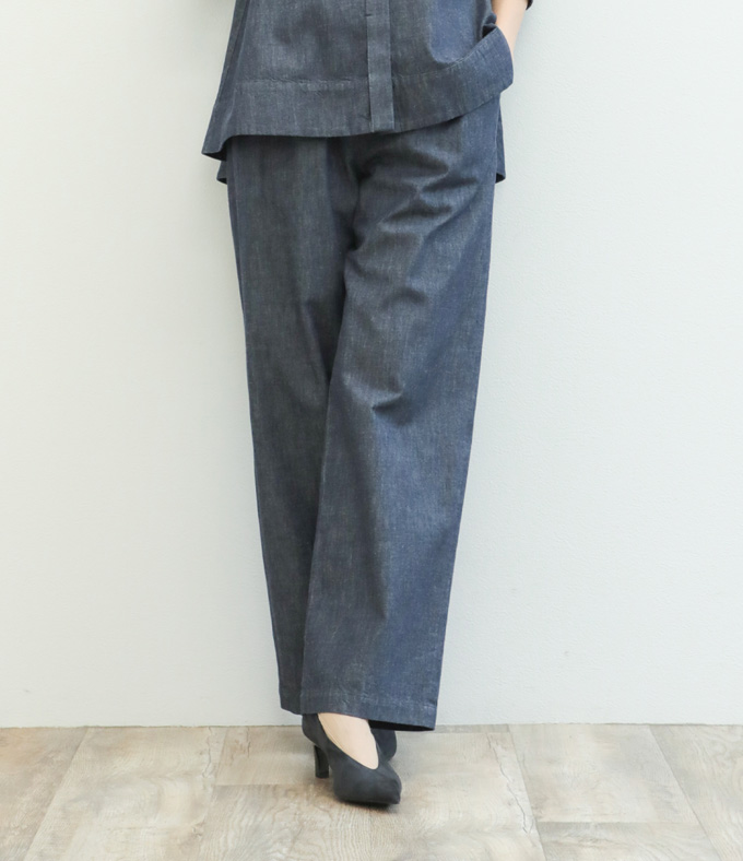 drawell ドロウェル パンツ ワイド デニム ドローストリング ウエストゴム コットン 反応染め 4-2-DW-30 インディゴ