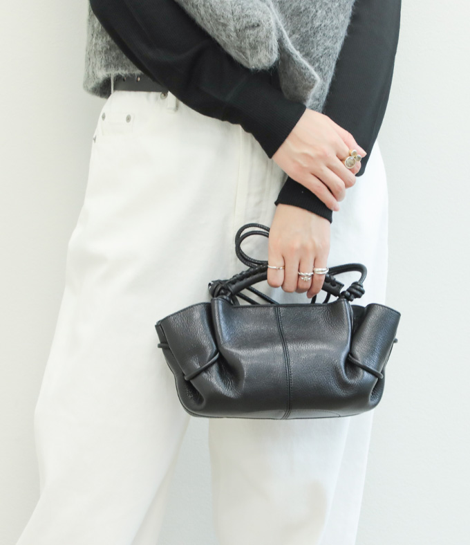 HEREU ヘリュー バッグ ハンド ショルダー レザー ラム 2WAY プリーツ スモールサイズ ARTA MINI BLACK/ブラック