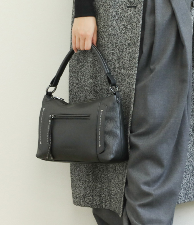 VISONA ヴィソナ ハンド ショルダー バッグ レザー シボ革 フラップ ワンハンドル 2WAY 25556 CAFFE/ダークブラウン
