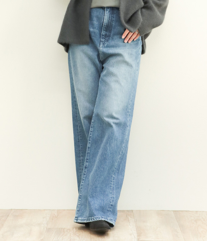 woadblue ウォードブルー レディース デニム ストレート ウォッシュド ルーズフィット ハイライズ WB24314 SALUU サルー MDBU/ミッドブルー