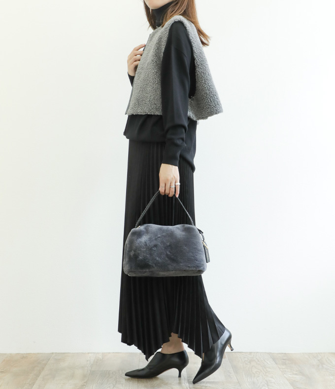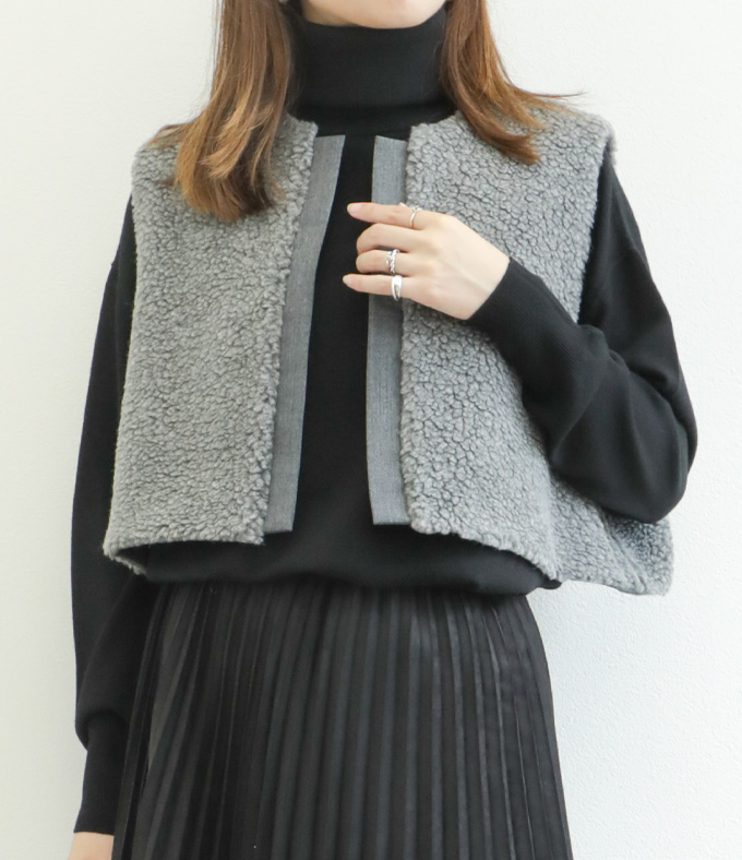 SACRA サクラ レディース ベスト ジレ ボア ポリエステル ウール クロップド POODLE FUR SHORT GILET 125505061 BLACK/ブラック