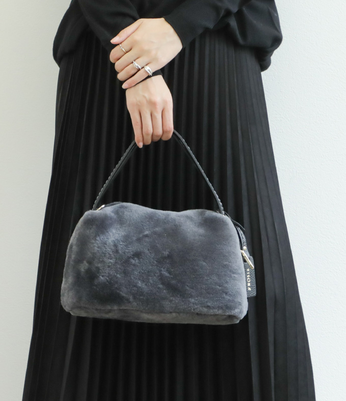 VISONA ヴィソナ ハンド ショルダー バッグ レザー ムートン ファー 2ハンドル 2WAY 21680 NUTRIA/ベージュ