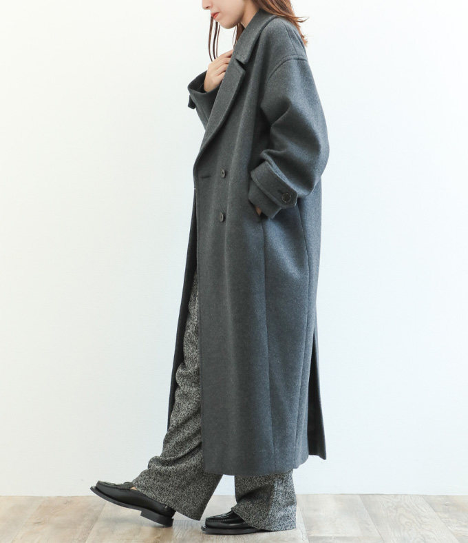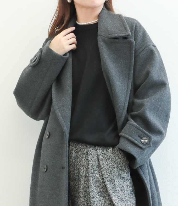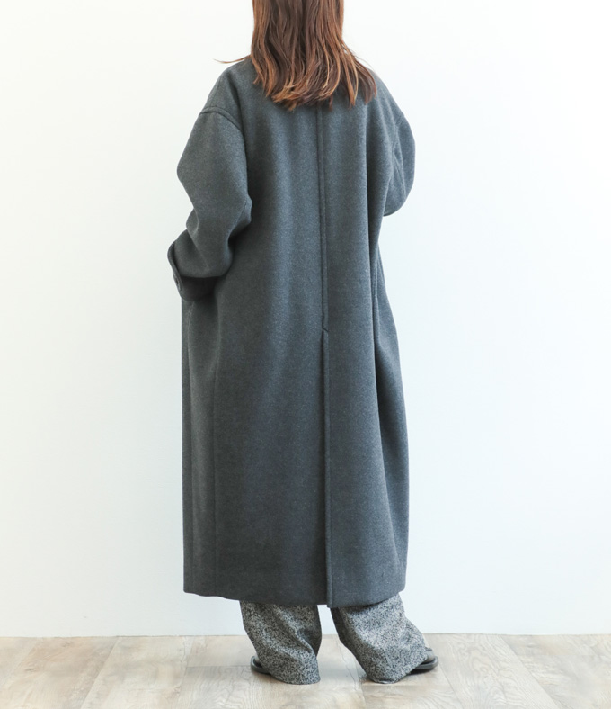 SACRA サクラ コート ダブル ウール ナイロン Super 140's コクーン ドロップショルダー SUPERIOR MELTON COAT 1125500011 CHARCOAL/チャコール