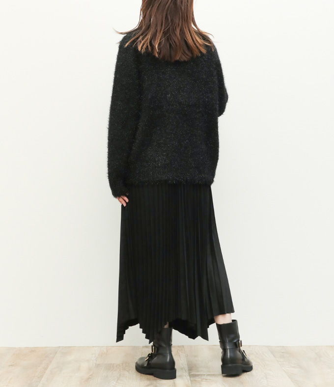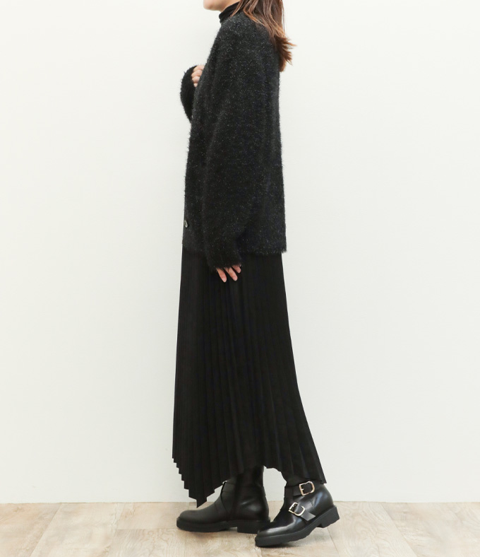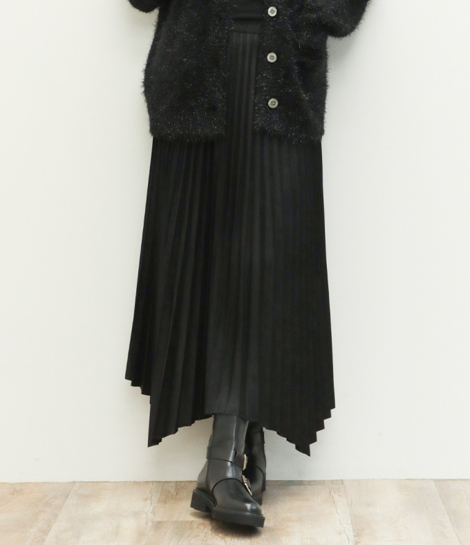 SACRA サクラ スカート ロング プリーツ ランダムヘム マキシ丈 フェイクスエード 合成皮革 SYNTHETIC SUEDE PLEATS SKIRT 125523121 BLACK/ブラック