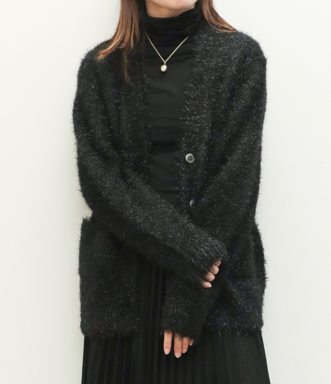 drawell ドロウェル カーディガン Vネック ニット メタルフィルムヤーン キュプラ ポリエステル 4-2-DW-51 ゴールド