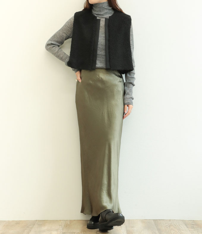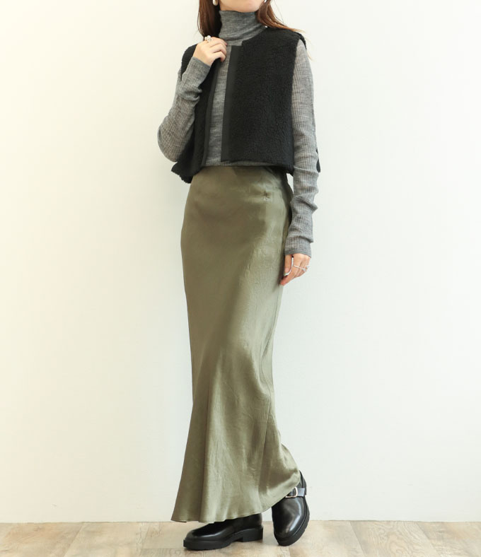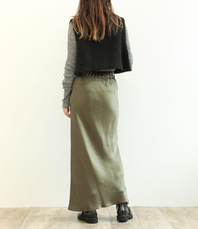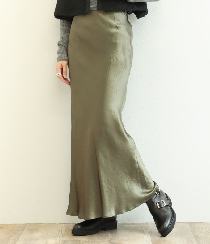 SACRA サクラ レディース スカート ロング丈 アセテート キュプラ ナローライン ACETATE SATIN SKIRT 125511122 BLACK/ブラック