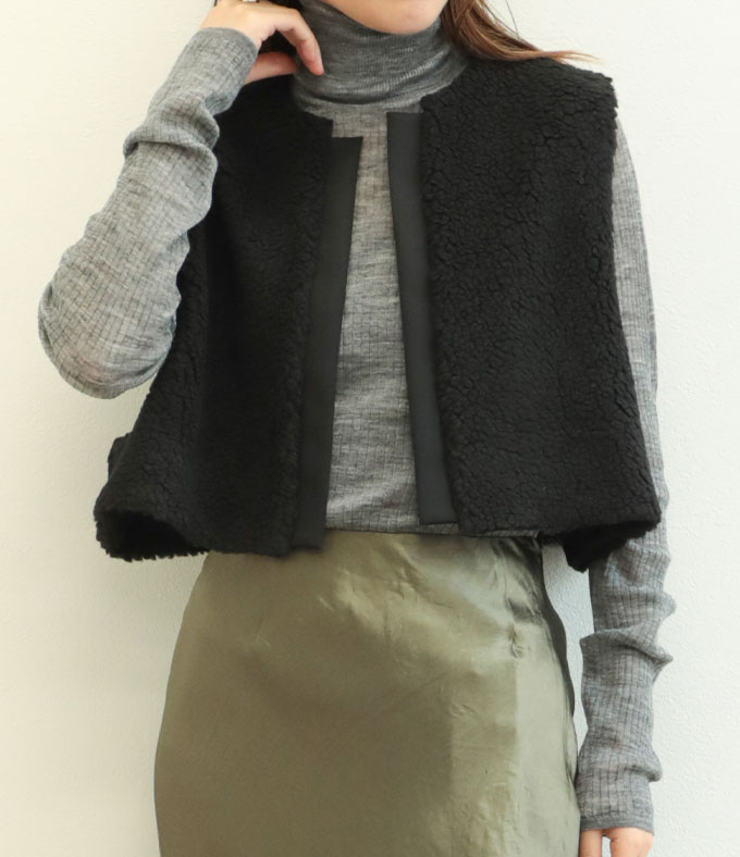 SACRA サクラ レディース ベスト ジレ ボア ポリエステル ウール クロップド POODLE FUR SHORT GILET 125505061 BLACK/ブラック