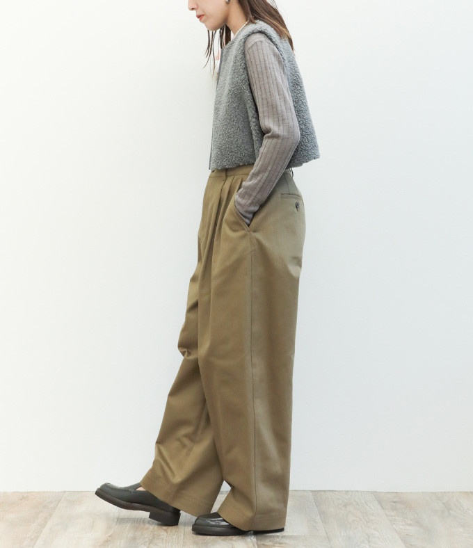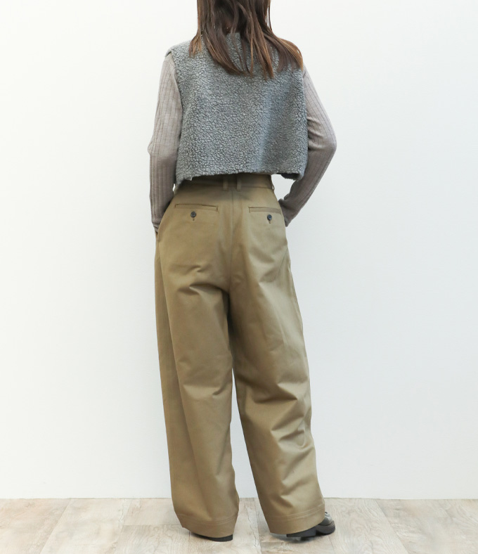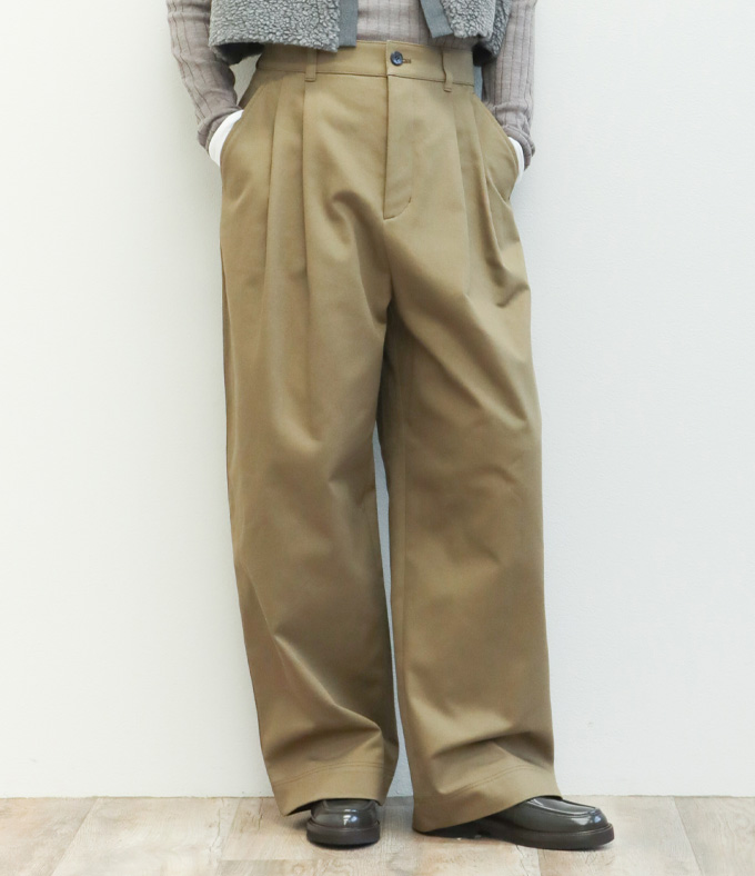 SACRA サクラ レディース パンツ ワイド コットン チノ 2プリーツ カービー ツイル H.COUNT CHINO CLOTH PANTS 125614111 KHAKI/カーキ