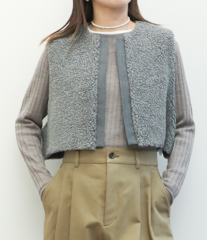 SACRA サクラ レディース ベスト ジレ ボア ポリエステル ウール クロップド POODLE FUR SHORT GILET 125505061 BLACK/ブラック