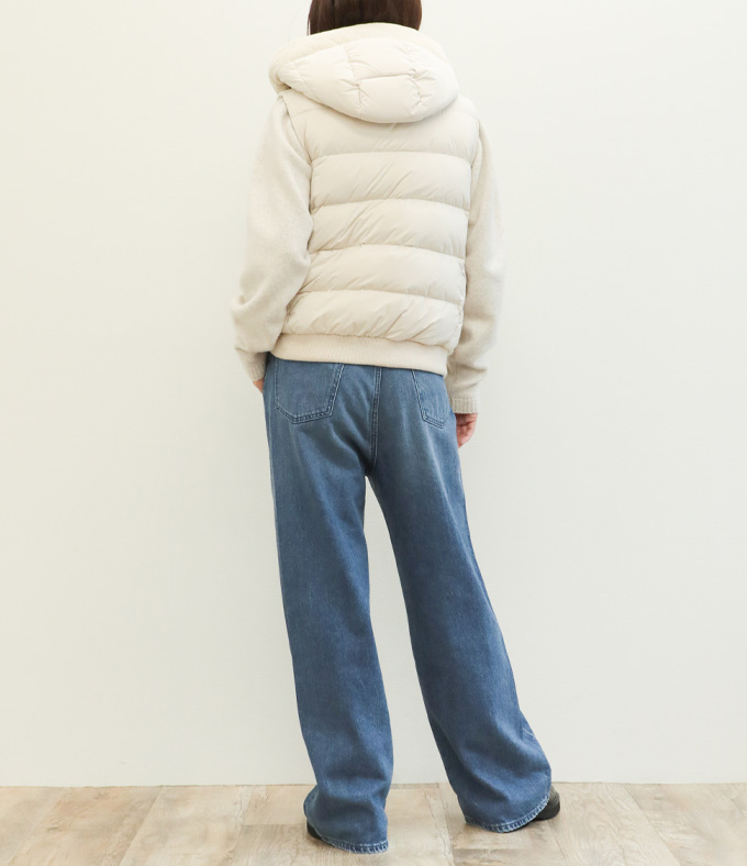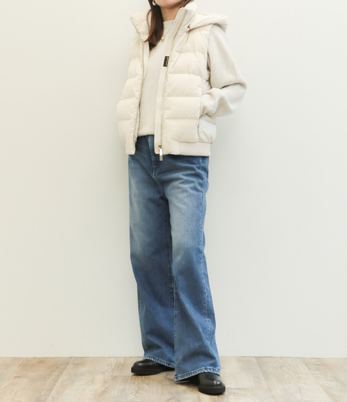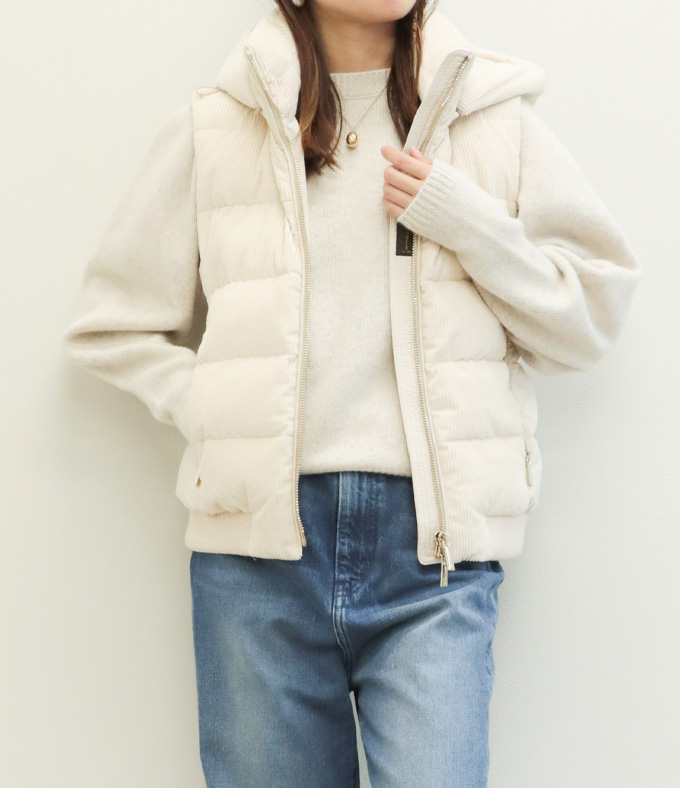 moorer ムーレー レディース ダウン ベスト ショート丈 コーデュロイ コットン ナイロン ポリエステル 358-42406 LAYRE LVO STONE/アイボリー