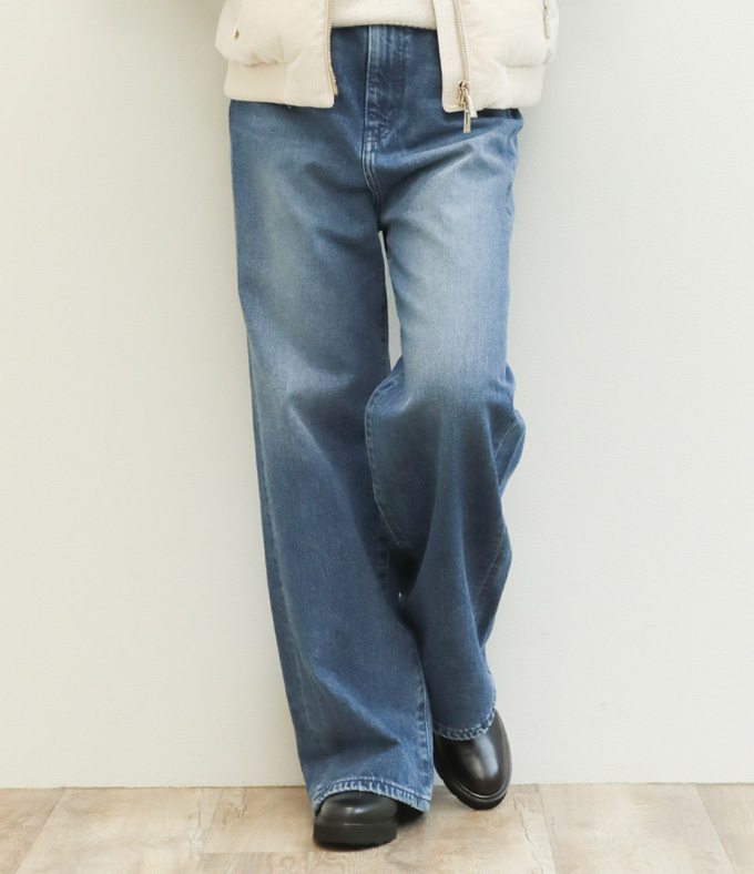 woadblue ウォードブルー レディース デニム ストレート ウォッシュド ルーズフィット ハイライズ WB24314 SALUU サルー MDBU/ミッドブルー