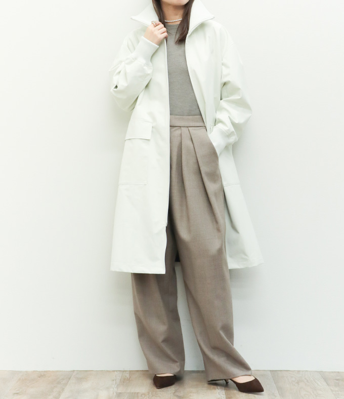 drawell ドロウェル コート レディース ロング丈 ナイロン 透湿防水 防風 UVカット リブ 3レイヤーライトシェルウェザープルーフタフタ 4-2-DW-41 アイボリー