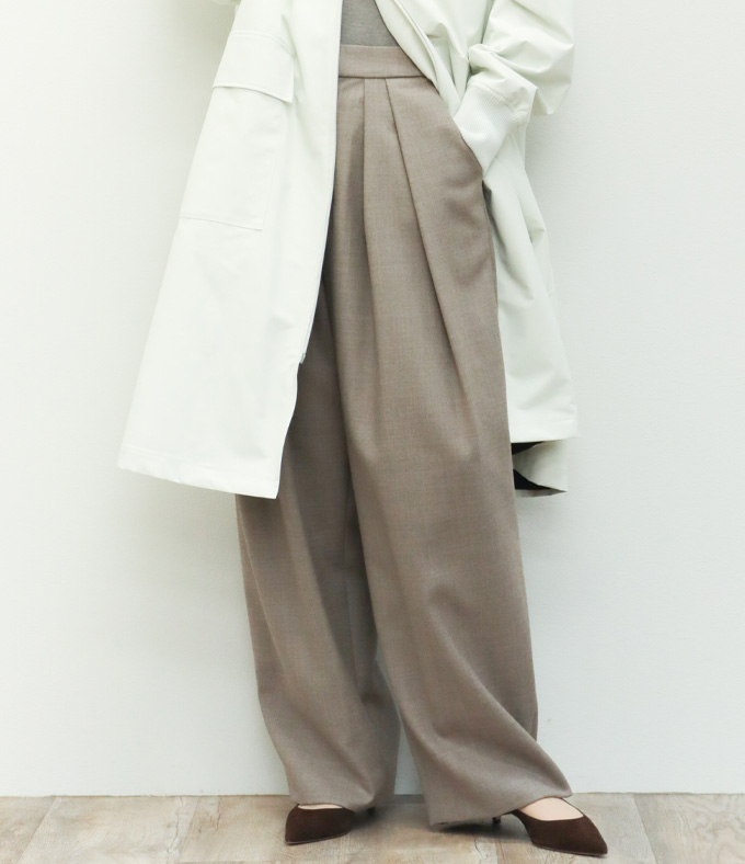 SACRA サクラ パンツ ワイド ウール サージ 2プリーツ 尾錠付き テーパード H.COUNT WORSTED SERGE PANTS 125515112 CHARCOAL/チャコール