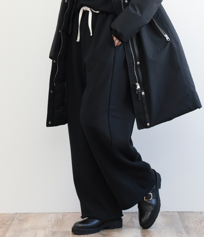 SACRA サクラ パンツ スウェット ワイド カービー コットン ウエストゴム 無地 PREMIUM-FLEECE PANTS 125651112 BLACK/ブラック