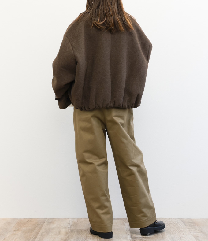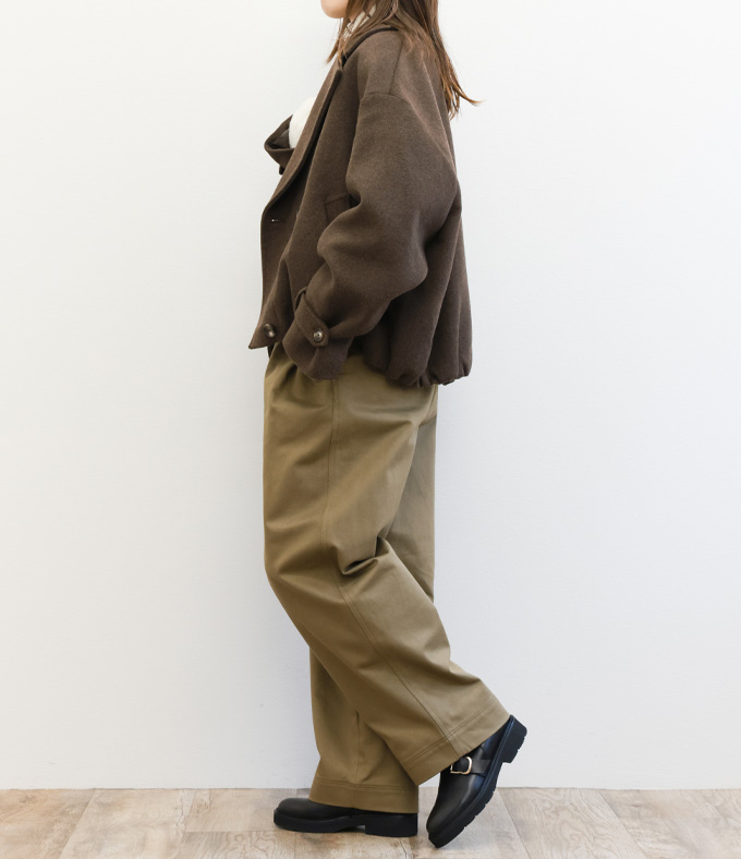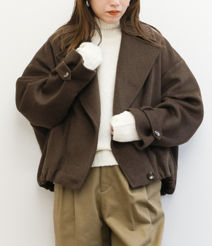 STUDIO AR スタジオエーアール ジャケット レディース ウール ポリエステル メルトン ギャザー ショート丈 SILAS Wool Blend Choco/ダークブラウン