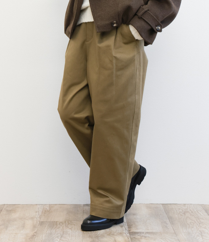SACRA サクラ レディース パンツ ワイド コットン チノ 2プリーツ カービー ツイル H.COUNT CHINO CLOTH PANTS 125614111 KHAKI/カーキ