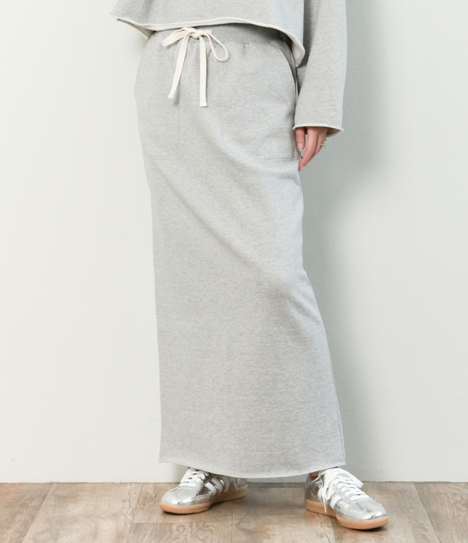 SACRA サクラ スカート スウェット レディース ロング ウエストゴム ドローコード EXTRA FINE FLEECE 126142122 BLACK/ブラック