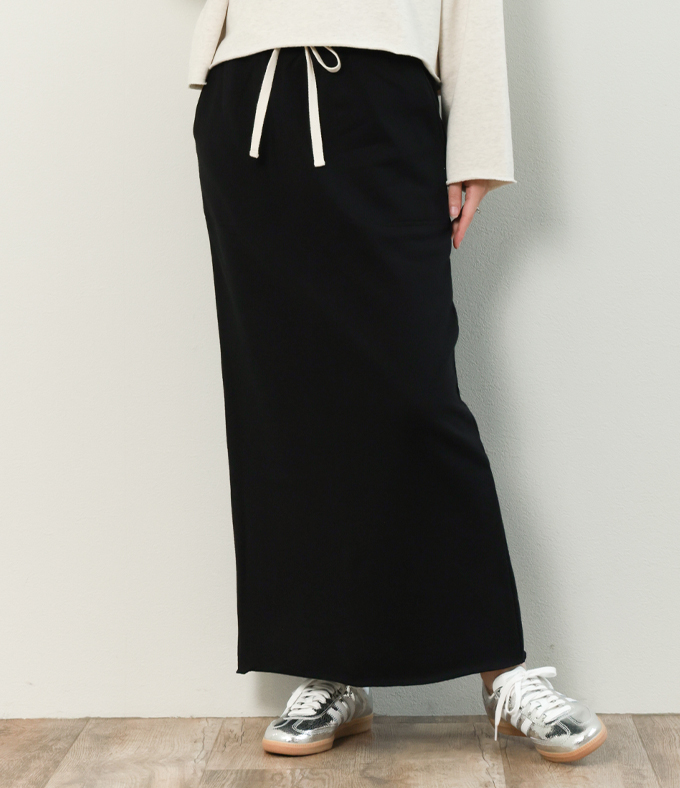 SACRA サクラ スカート スウェット レディース ロング ウエストゴム ドローコード EXTRA FINE FLEECE 126142122 BLACK/ブラック