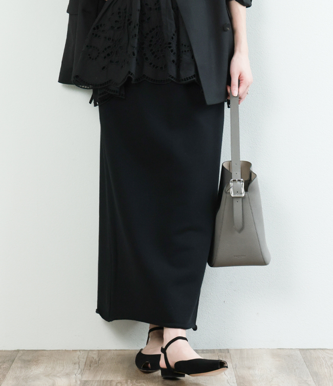 SACRA サクラ スカート スウェット レディース ロング ウエストゴム ドローコード EXTRA FINE FLEECE 126142122 BLACK/ブラック