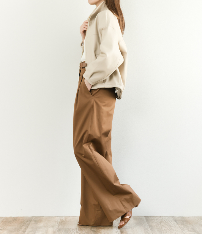 PT TORINO ピーティートリノ レディース パンツ スラックス ワイド コットン ギャバジン ストレッチ ツープリーツ FRANKIE VD10 0870/ブラウン